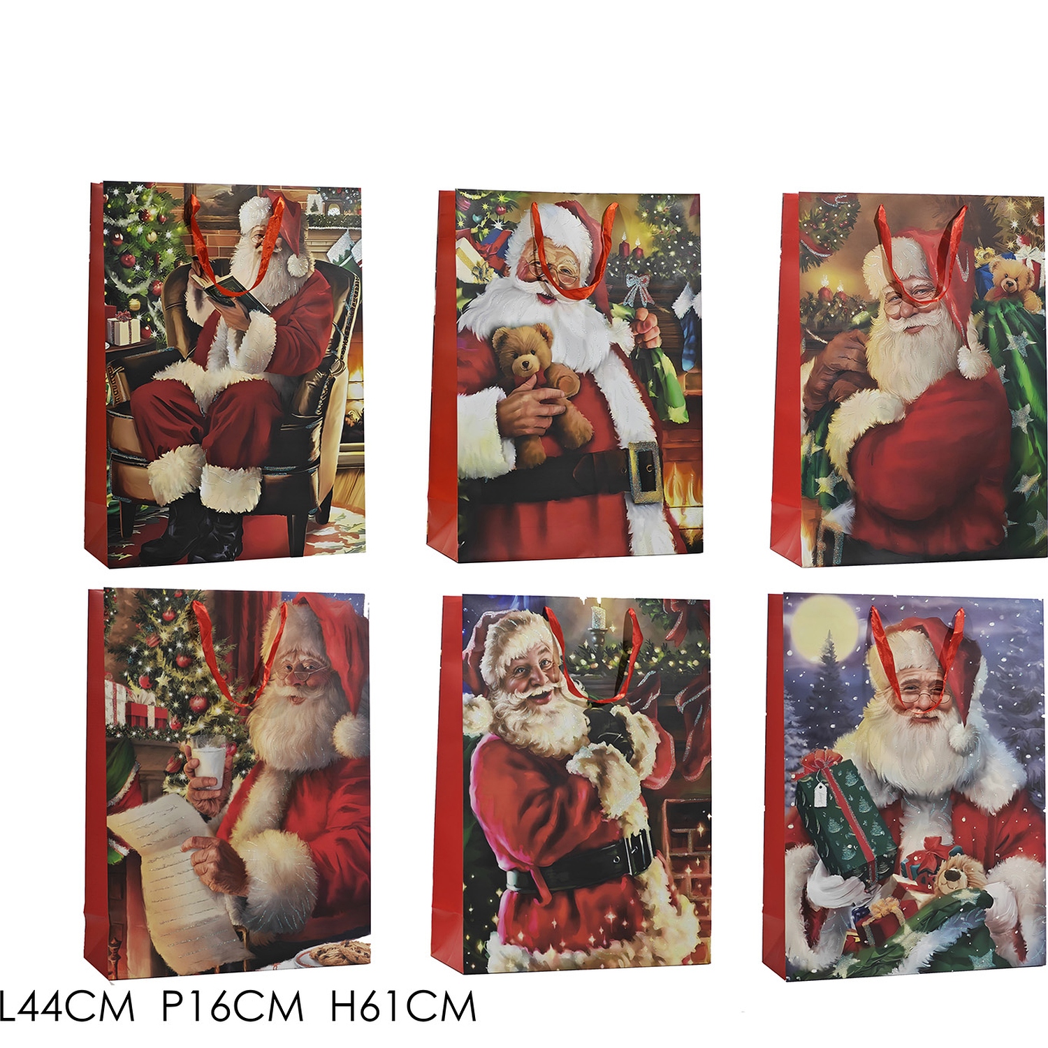 Δώστε στα δώρα σας μια εντυπωσιακή και λαμπερή εμφάνιση με αυτές τις γιγάντιες χριστουγεννιάτικες τσάντες δώρου με γκλίτερ. Με διαστάσεις 44x16x61cm, είναι διαθέσιμο σε τέσσερα διαφορετικά σχέδια με χαρούμενες χριστουγεννιάτικες εικόνες. Ιδανικές για να προσθέσετε μια εορταστική αίσθηση στα δώρα σας και να εντυπωσιάσετε τους αγαπημένους σας.