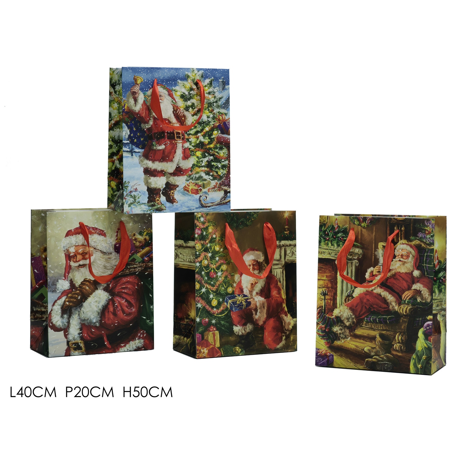 Τσάντα συσκευασίας με κορδόνι χριστουγεννιάτικη 40x20x50cm σε 4 σχέδια.