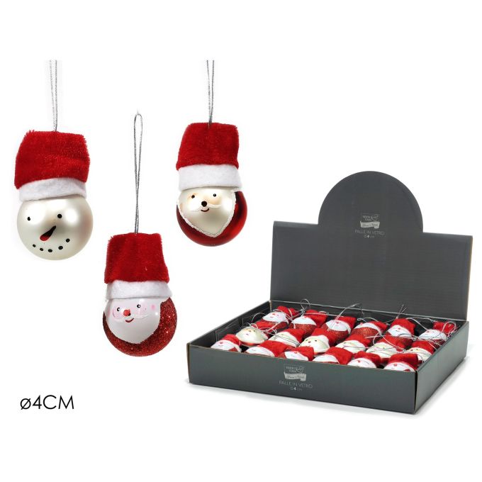 Μπάλα Άι Βασίλης/χιονάνθρωπος με καπέλο κόκκινο γυαλί Φ4cm σε 3 σχέδια.