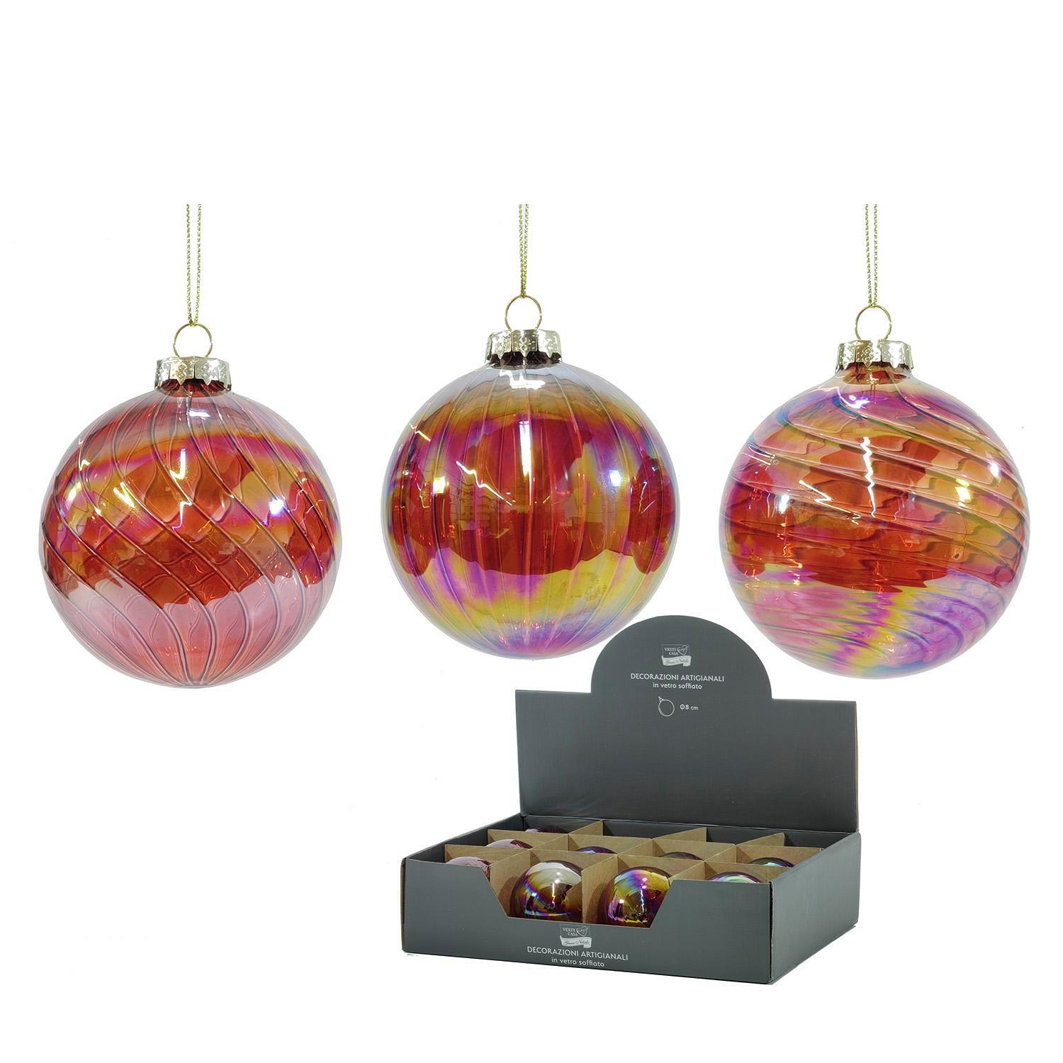 Μπάλα κόκκινο γυαλί φ8cm σε 3 σχέδια