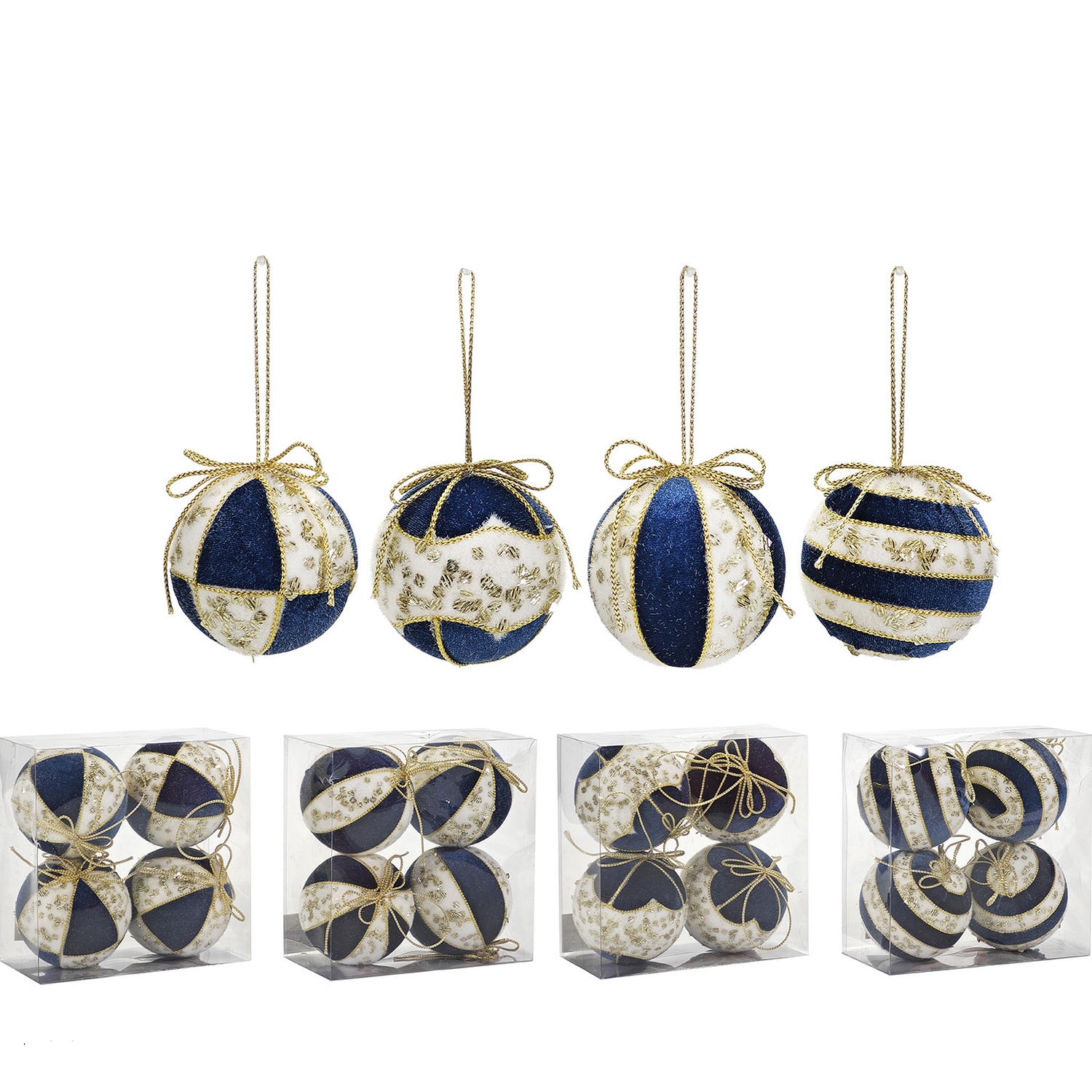 Χριστουγεννιάτικη Μπάλα Μπλε 100mm Σετ 4Τμχ Σε 4 Σχέδια