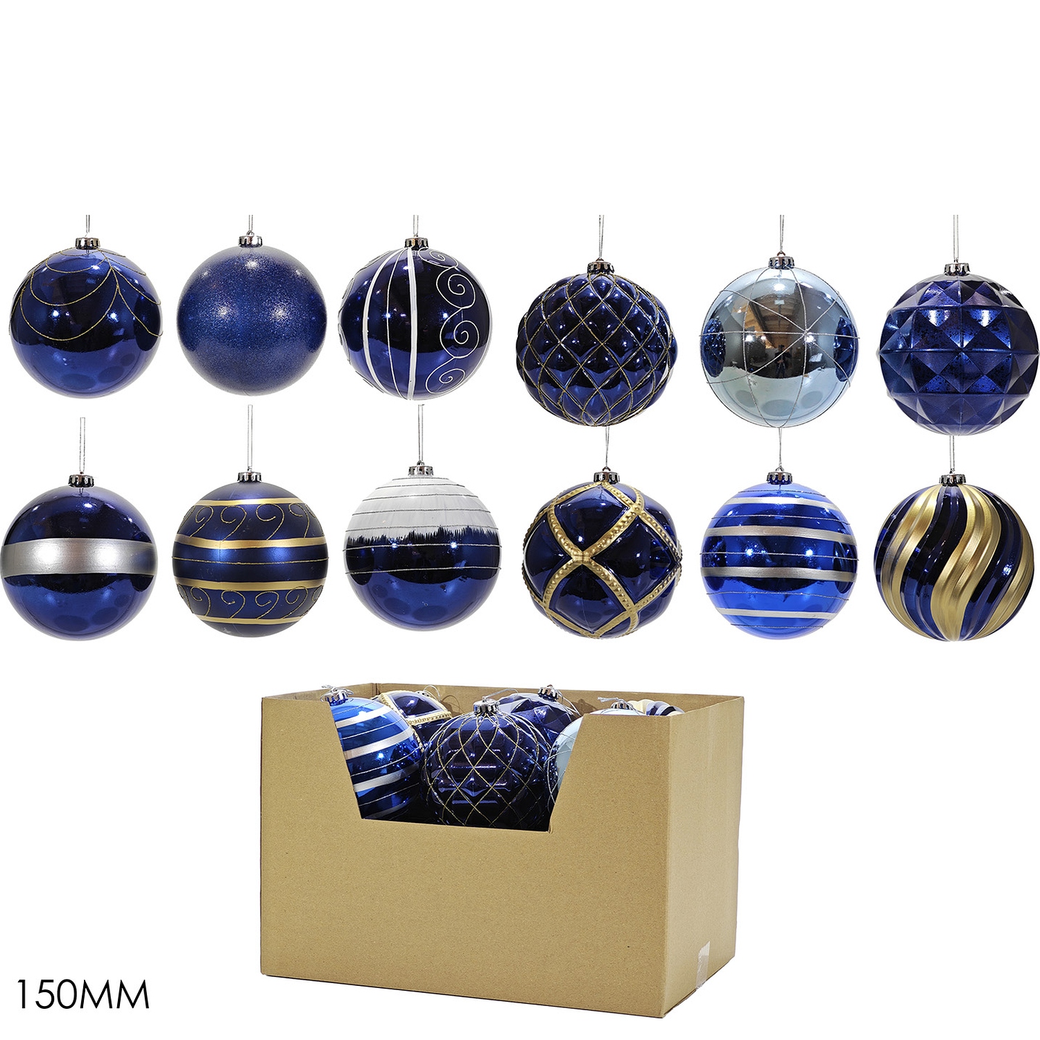 Προσθέστε λάμψη και κομψότητα στο χριστουγεννιάτικο δέντρο σας με αυτές τις εντυπωσιακές μπλε μπάλες. Με διάμετρο 150mm και διαθέσιμες σε 12 διαφορετικά σχέδια, αυτές οι μπάλες είναι ιδανικές για να δημιουργήσουν μια πολυτελή και γιορτινή ατμόσφαιρα. Τοποθετήστε τις στο δέντρο σας για να προσθέσετε μια μοναδική και λαμπερή πινελιά.