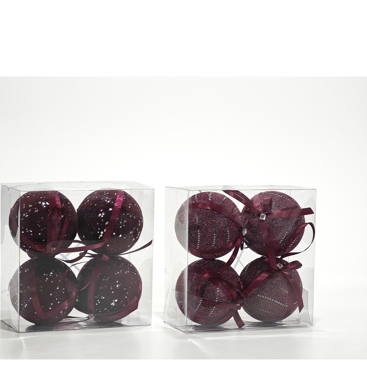 Σετ 4 Χριστουγεννιάτικες Μπάλες 100mm Μπορντό Σε 2 Σχέδια
