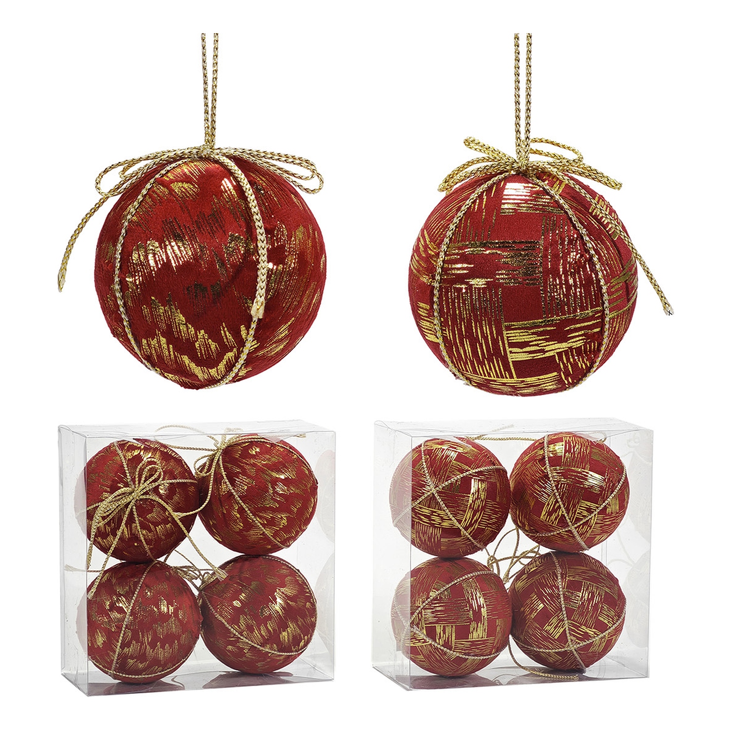 Χριστουγεννιάτικη Μπάλα Κόκκινο 100mm Σετ 4Τμχ Σε 2 Σχέδια