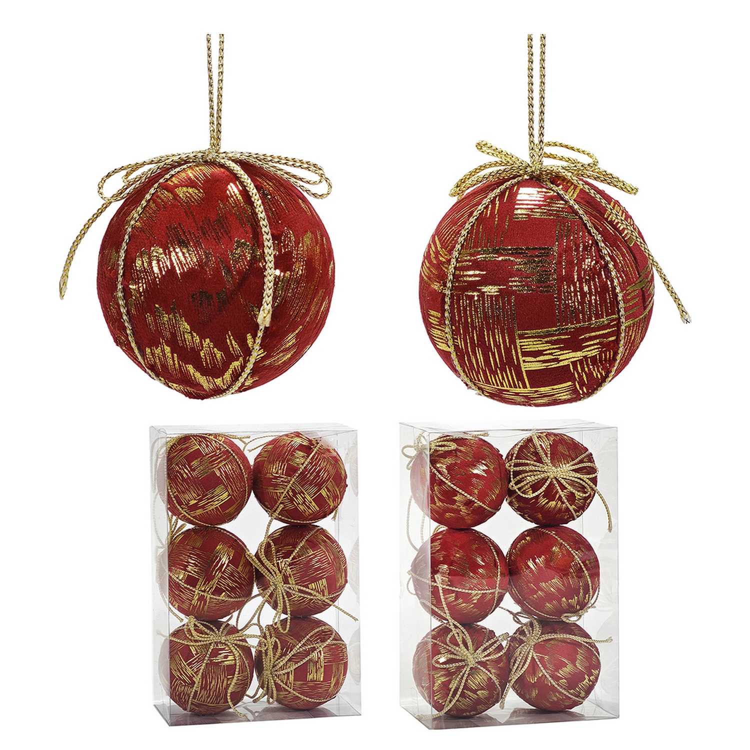 Χριστουγεννιάτικη Μπάλα Κόκκινο 80mm Σετ 6Τμχ Σε 2 Σχέδια