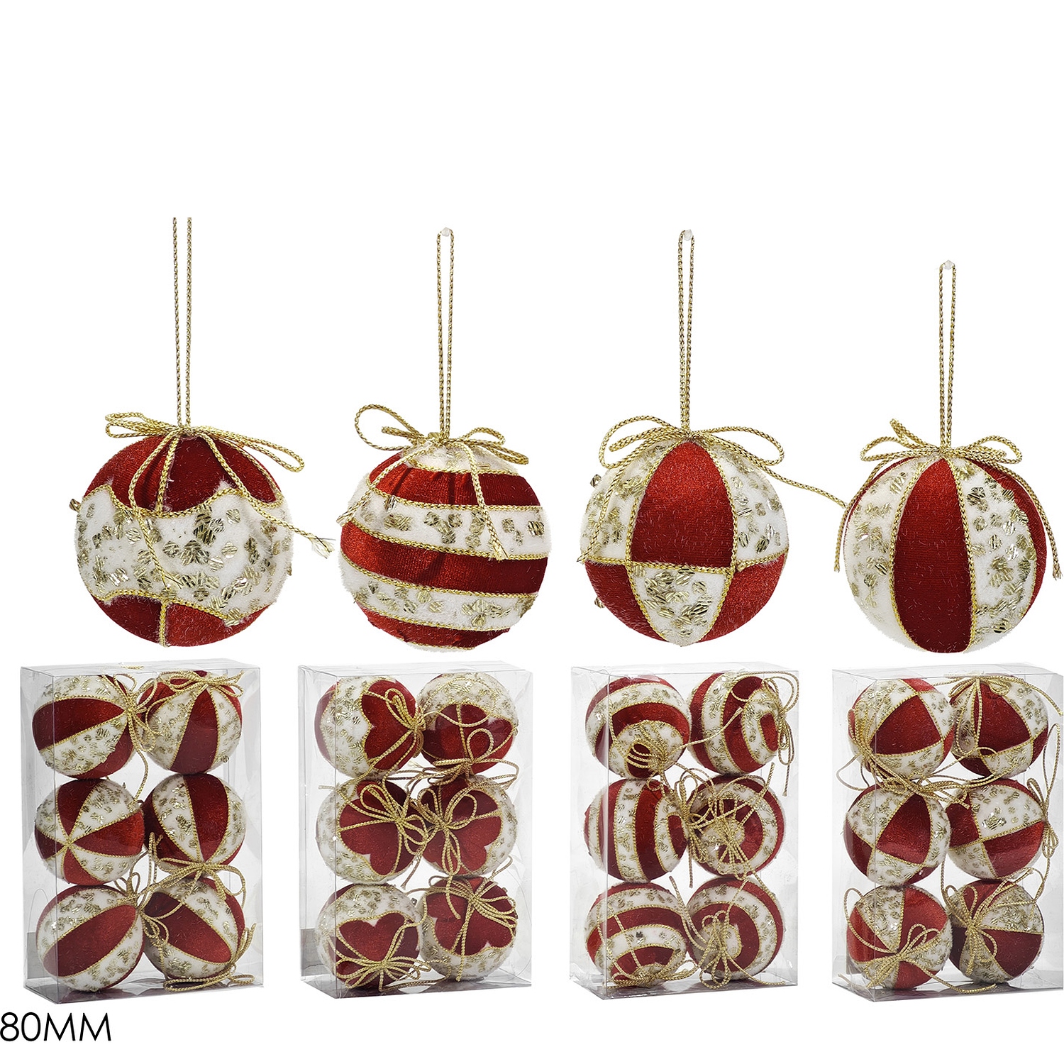 Χριστουγεννιάτικη Μπάλα Κόκκινο 80mm Σετ 6Τμχ Σε 4 Σχέδια