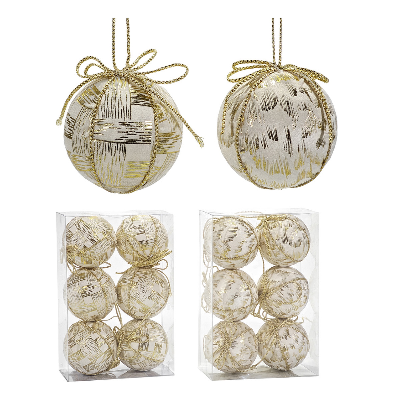 Χριστουγεννιάτικη Μπάλα Λευκό 80mm Σετ 6Τμχ Σε 2 Σχέδια