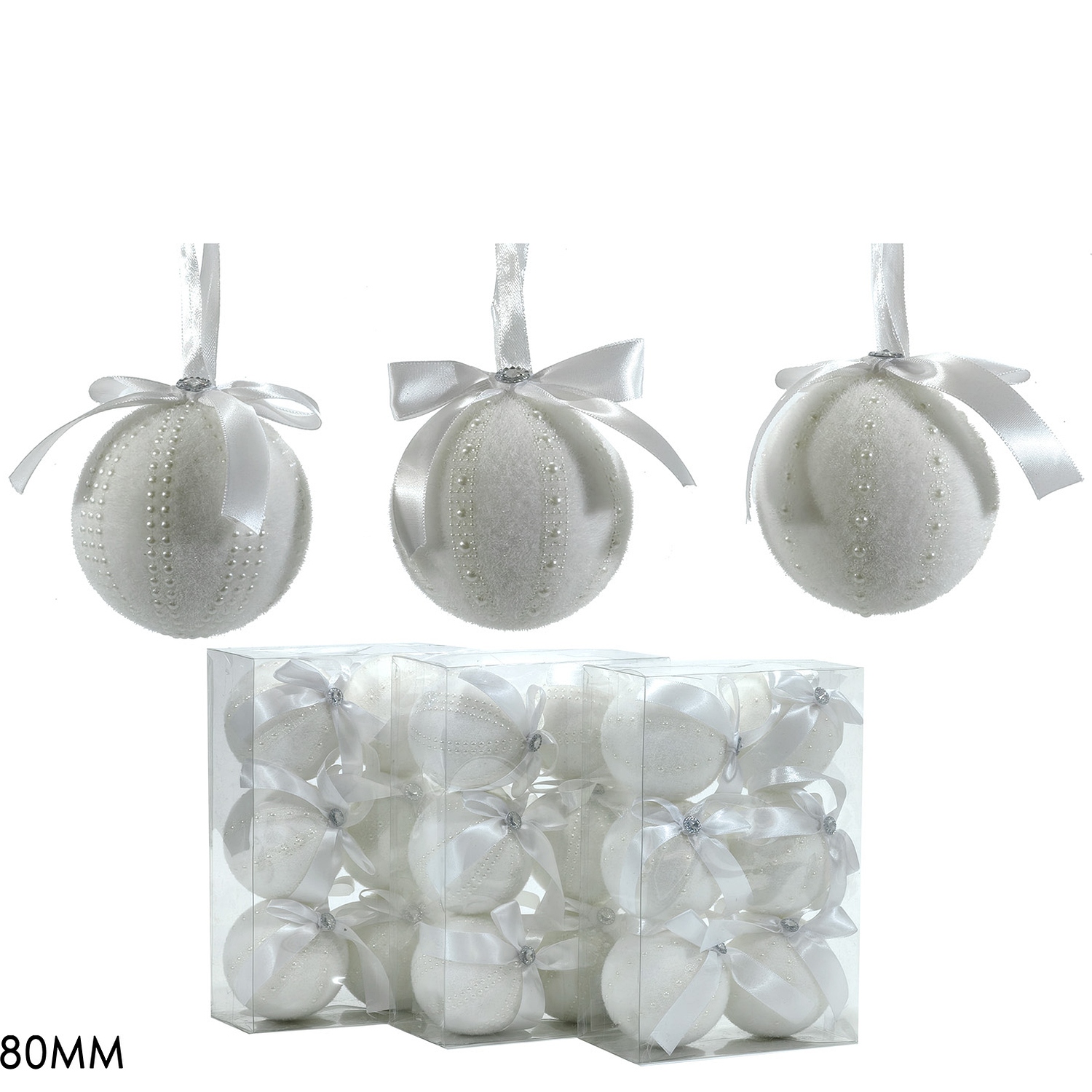 Χριστουγεννιάτικη Μπάλα Λευκό 80mm Σετ 6Τμχ Σε 3 Σχέδια
