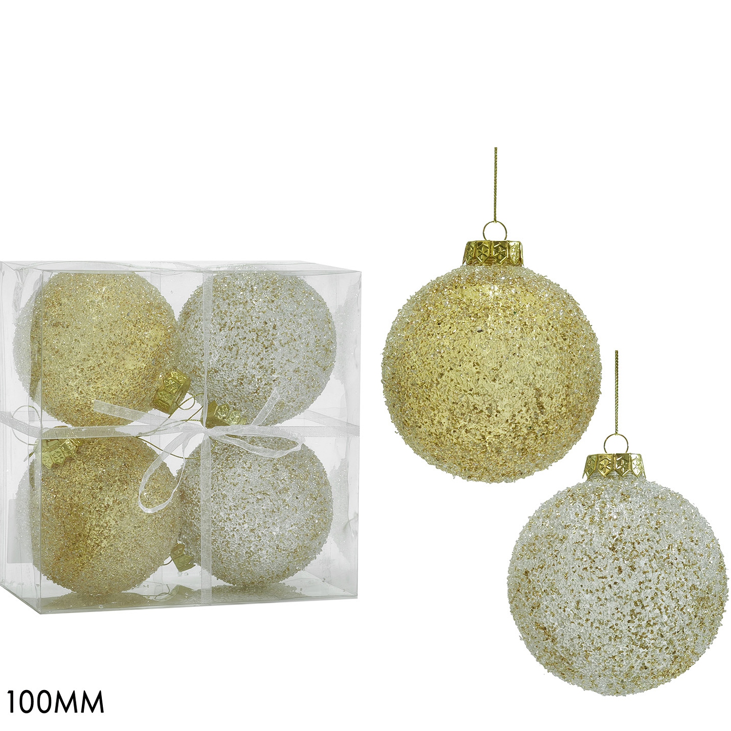Χριστουγεννιάτικη Μπάλα Με Γκλίτερ Χρυσό 100mm Σετ 4Τμχ
