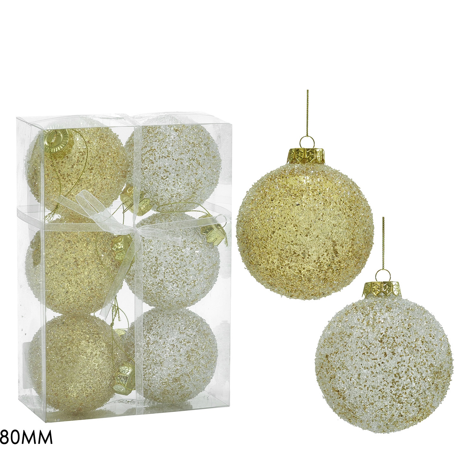 Χριστουγεννιάτικη Μπάλα Με Γκλίτερ Χρυσό 80mm Σετ 6Τμχ