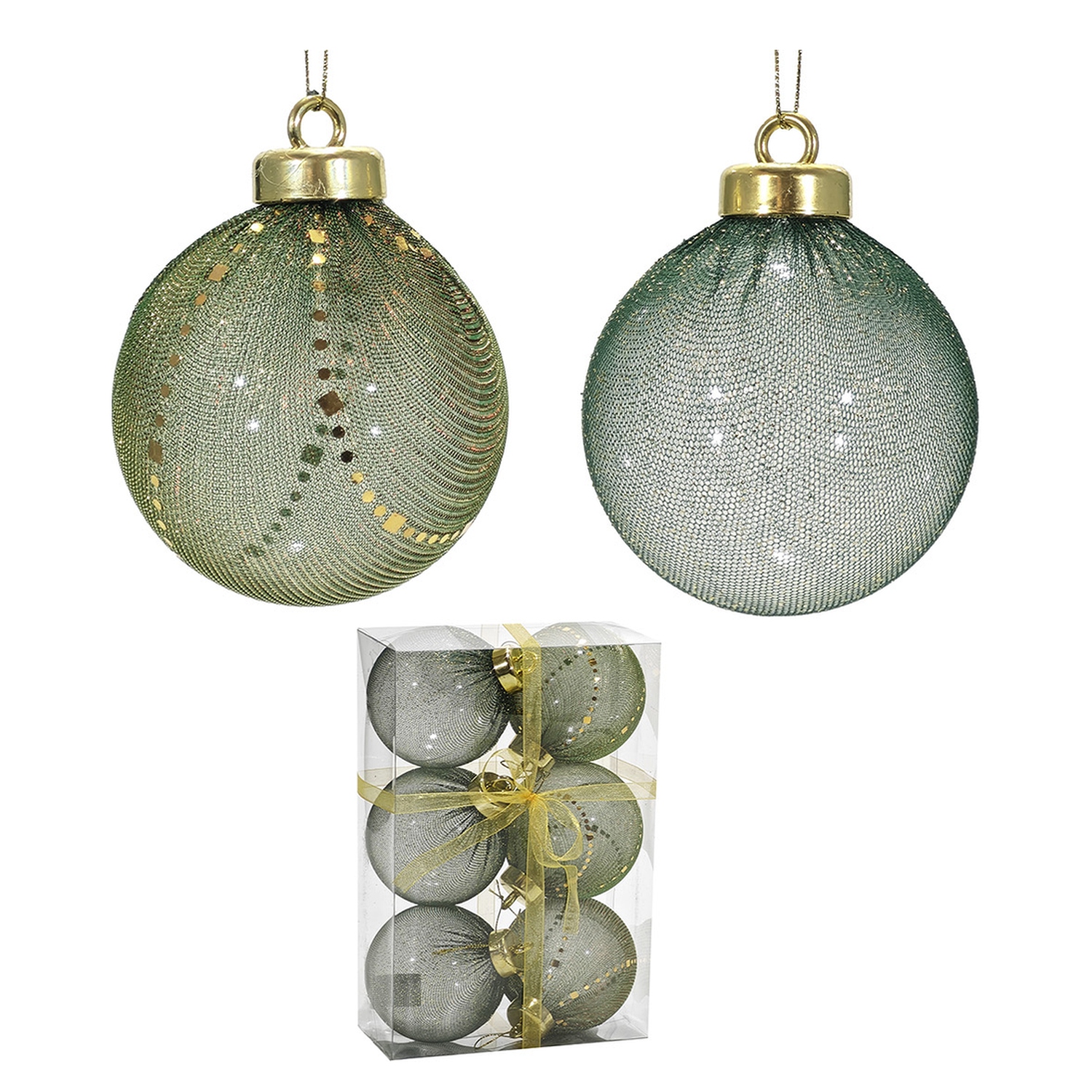 Προσθέστε μια φυσική και κομψή πινελιά στο χριστουγεννιάτικο δέντρο σας με αυτές τις μπάλες σε πράσινο χρώμα. Με διάμετρο 80mm, είναι διαθέσιμο σε έξι τεμάχια, διακοσμημένα με λεπτομέρειες που προσθέτουν λάμψη και κομψότητα. Ιδανικές για να ενισχύσουν τη διακόσμησή σας και να εντυπωσιάσουν τους καλεσμένους σας.
