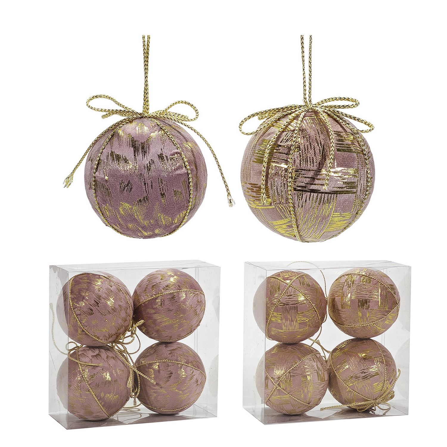 Χριστουγεννιάτικη Μπάλα Ροζ 100mm Σετ 4Τμχ Σε 2 Σχέδια