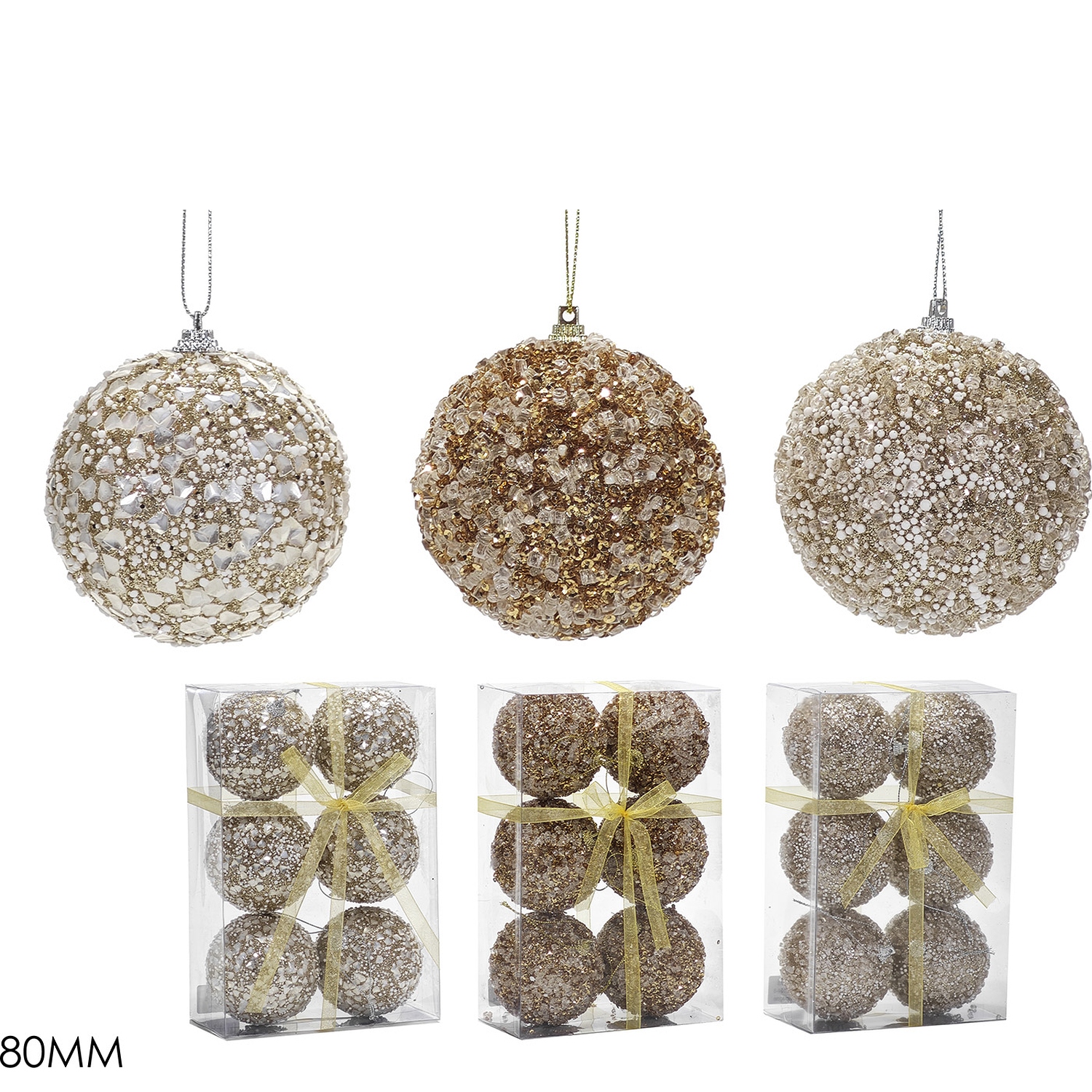 Προσθέστε λάμψη και κομψότητα στο χριστουγεννιάτικο δέντρο σας με αυτό το σετ από 6 μπάλες ροζ χρυσού. Με διάμετρο 80mm και διαθέσιμες σε 3 διαφορετικά σχέδια, αυτές οι μπάλες είναι ιδανικές για να δημιουργήσουν μια πολυτελή και γιορτινή ατμόσφαιρα. Τοποθετήστε τις στο δέντρο σας για να προσθέσετε μια μοναδική και λαμπερή πινελιά.