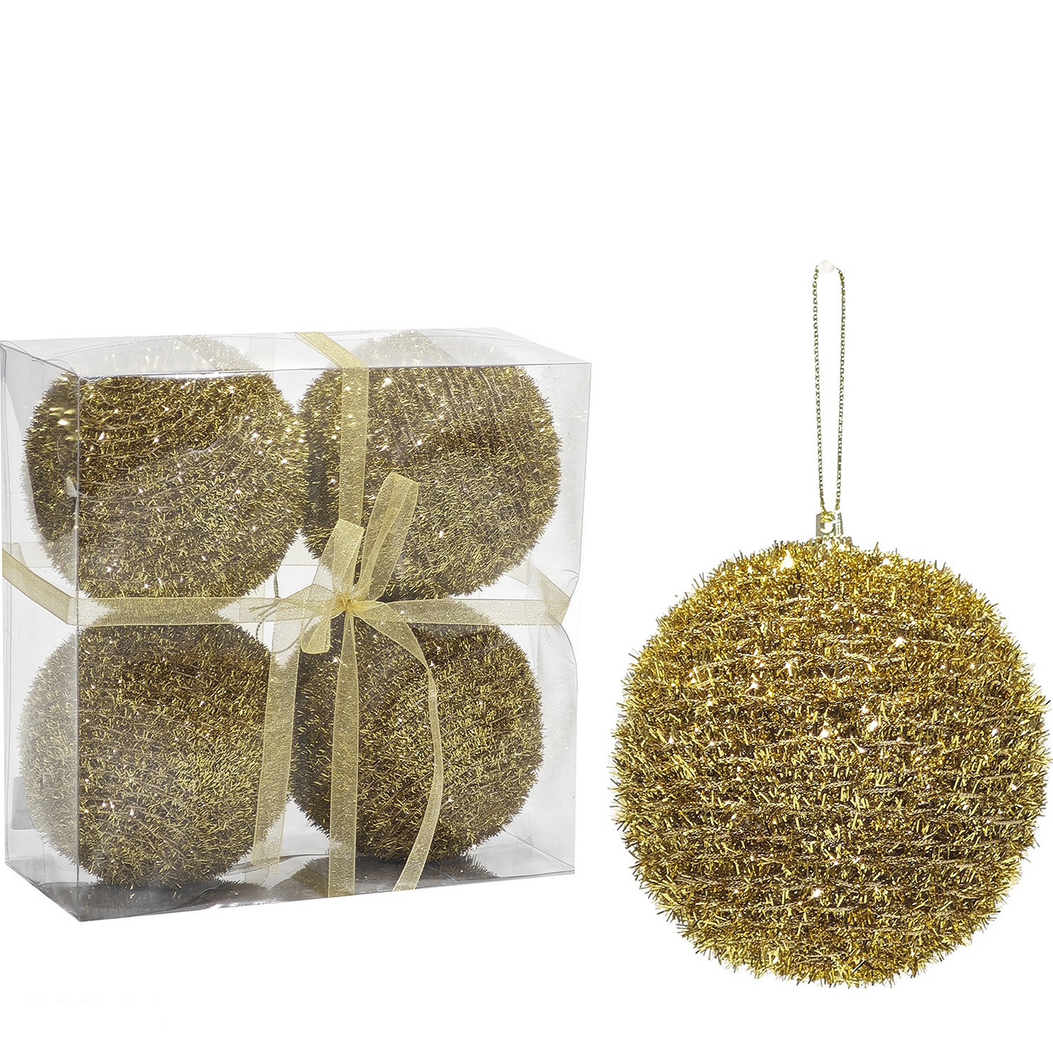 Προσθέστε λάμψη και πολυτέλεια στο χριστουγεννιάτικο δέντρο σας με αυτές τις μπάλες σε χρυσό χρώμα. Με διάμετρο 100mm, είναι διαθέσιμο σε τέσσερα τεμάχια, ιδανικά για να προσθέσουν μια κομψή και γιορτινή ατμόσφαιρα στον χώρο σας. Κατασκευασμένες από υψηλής ποιότητας υλικά, αυτές οι μπάλες προσφέρουν μια εντυπωσιακή και λαμπερή εμφάνιση που θα ενθουσιάσει τους καλεσμένους σας.
