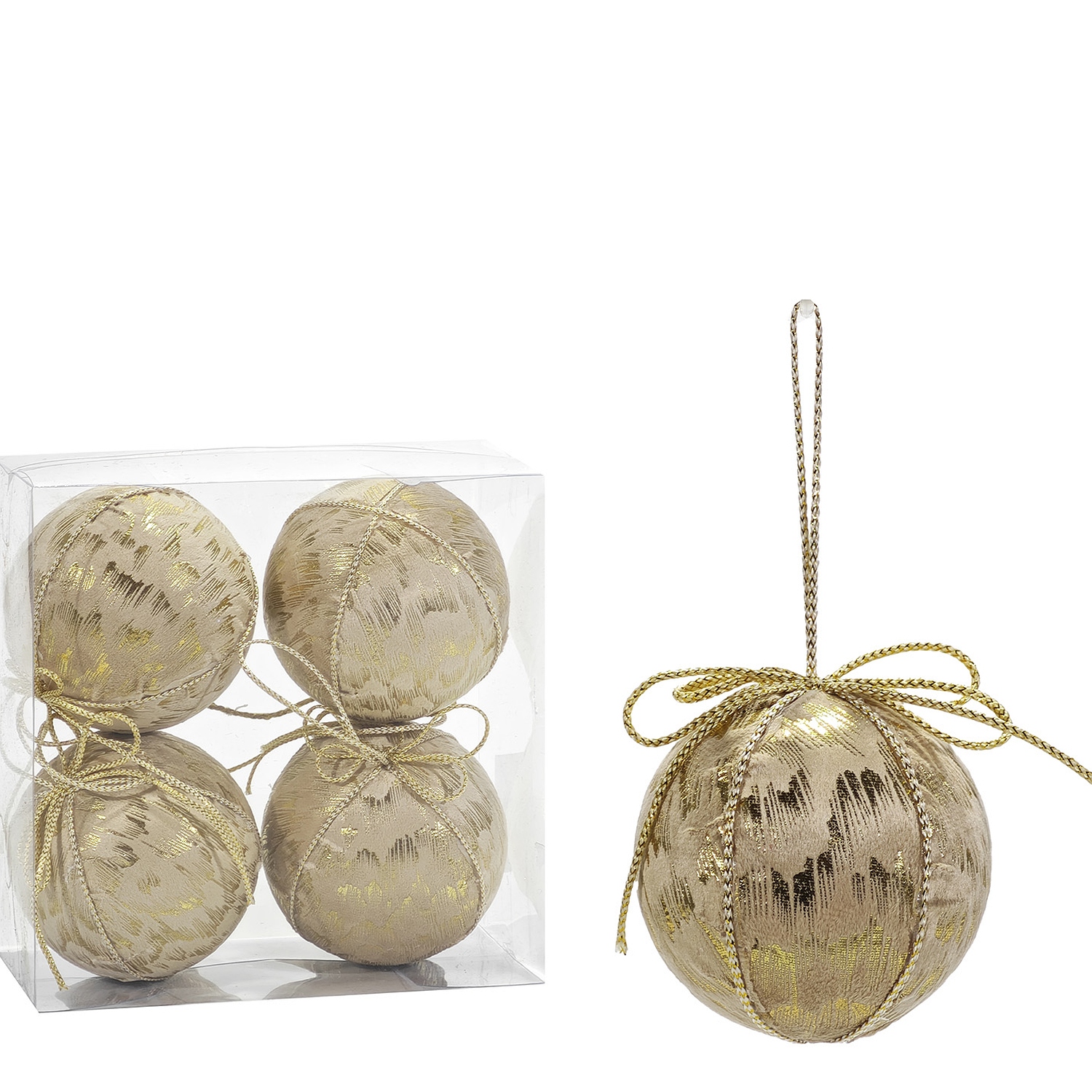 Δώστε μια εντυπωσιακή και κομψή πινελιά στο χριστουγεννιάτικο δέντρο σας με αυτές τις μεγάλες μπάλες σε χρυσό χρώμα. Με διάμετρο 100mm, είναι διαθέσιμο σε τέσσερα τεμάχια σε δύο διαφορετικά σχέδια, διακοσμημένα με λεπτομέρειες που προσθέτουν πολυτέλεια και γιορτινή ατμόσφαιρα. Ιδανικές για να ενισχύσουν τη διακόσμησή σας και να εντυπωσιάσουν τους καλεσμένους σας.