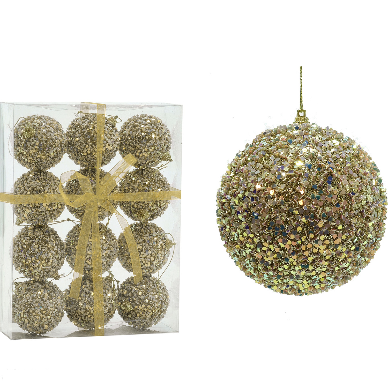 Χριστουγεννιάτικη Μπάλα Χρυσό 60mm Με Γκλίτερ Και Παγιέτες Σετ 12Τμχ