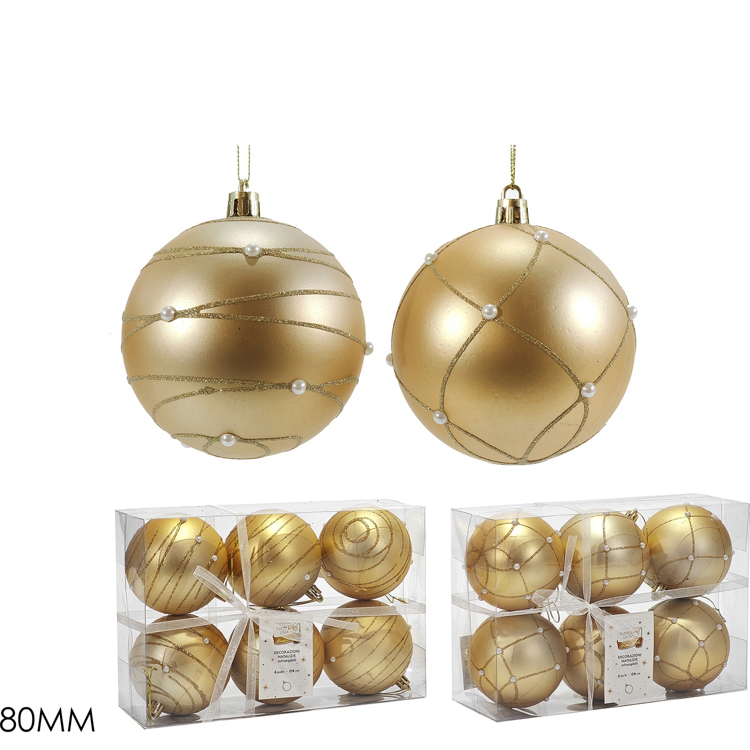 Χριστουγεννιάτικη Μπάλα Χρυσό 80mm Με Πέρλες Σετ 6Τμχ Σε 2 Σχέδια