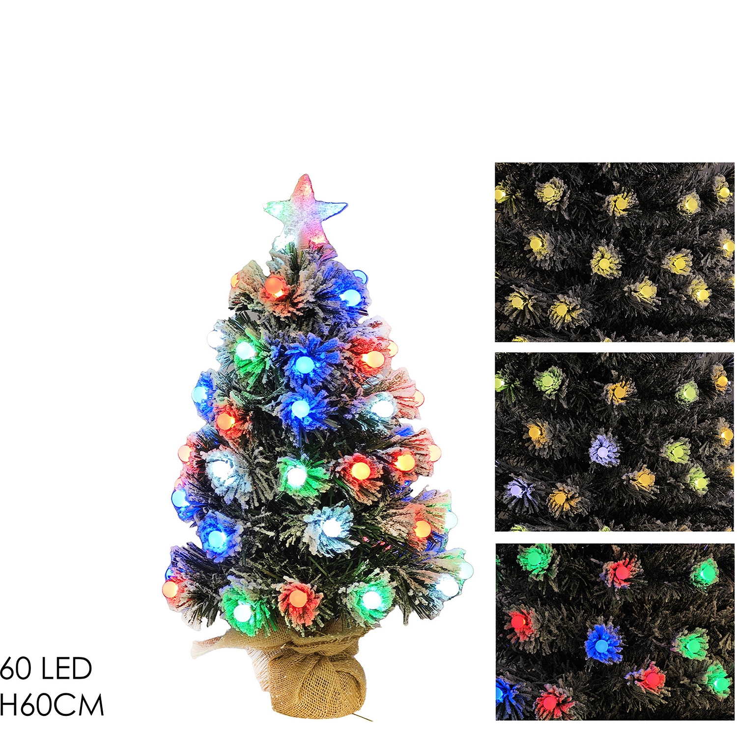 Φέρτε τη μαγεία των Χριστουγέννων στο σπίτι σας με αυτό το φωτεινό χριστουγεννιάτικο δέντρο οπτικών ινών. Με ύψος 60cm, διαθέτει 60 LED φώτα και εφέ χιονιού που προσθέτουν μια λαμπερή και γιορτινή αίσθηση. Ιδανικό για μικρούς χώρους, αυτό το δέντρο προσφέρει μια ζεστή και χαρούμενη ατμόσφαιρα.