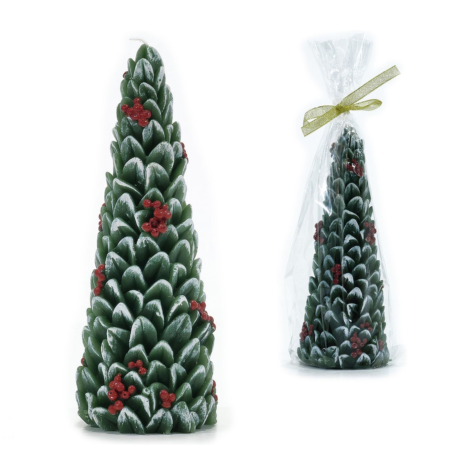 Προσθέστε μια γιορτινή και ζεστή ατμόσφαιρα στο χώρο σας με αυτό το χριστουγεννιάτικο κερί σε σχήμα δέντρου. Με ύψος 21cm, το κερί είναι διακοσμημένο με κόκκινα μούρα και λεπτομέρειες που θυμίζουν χιόνι, προσφέροντας μια μαγευτική και εορταστική εμφάνιση. Ιδανικό για να τοποθετηθεί σε τραπέζια, ράφια ή οποιοδήποτε σημείο που χρειάζεται μια γιορτινή διακόσμηση.
