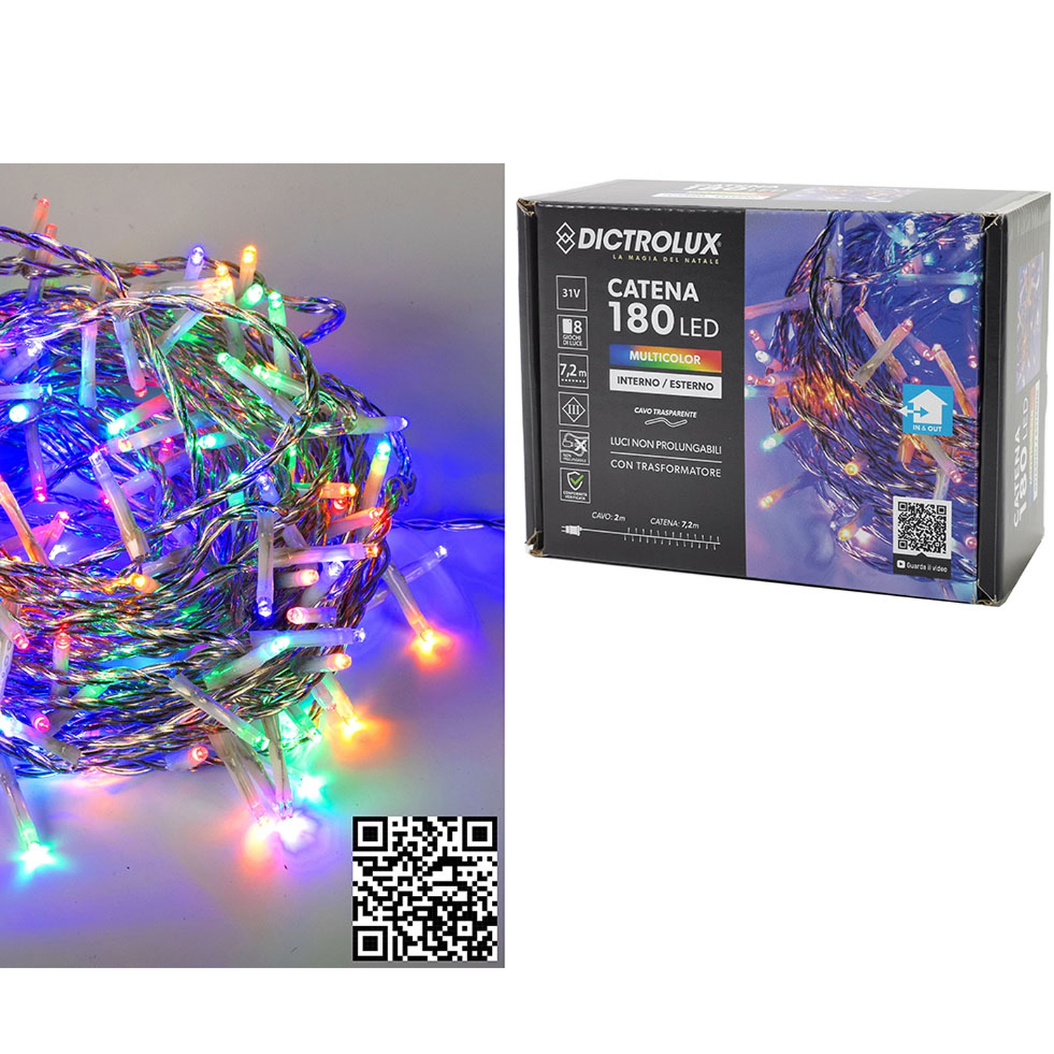 180 LED εσωτερικού και εξωτερικού χώρου με 8 προγράμματα και μετασχηματιστή πολύχρωμο φως διάφανο καλώδιο μη επεκτεινόμενο IP44 31V 7.2+2m.
