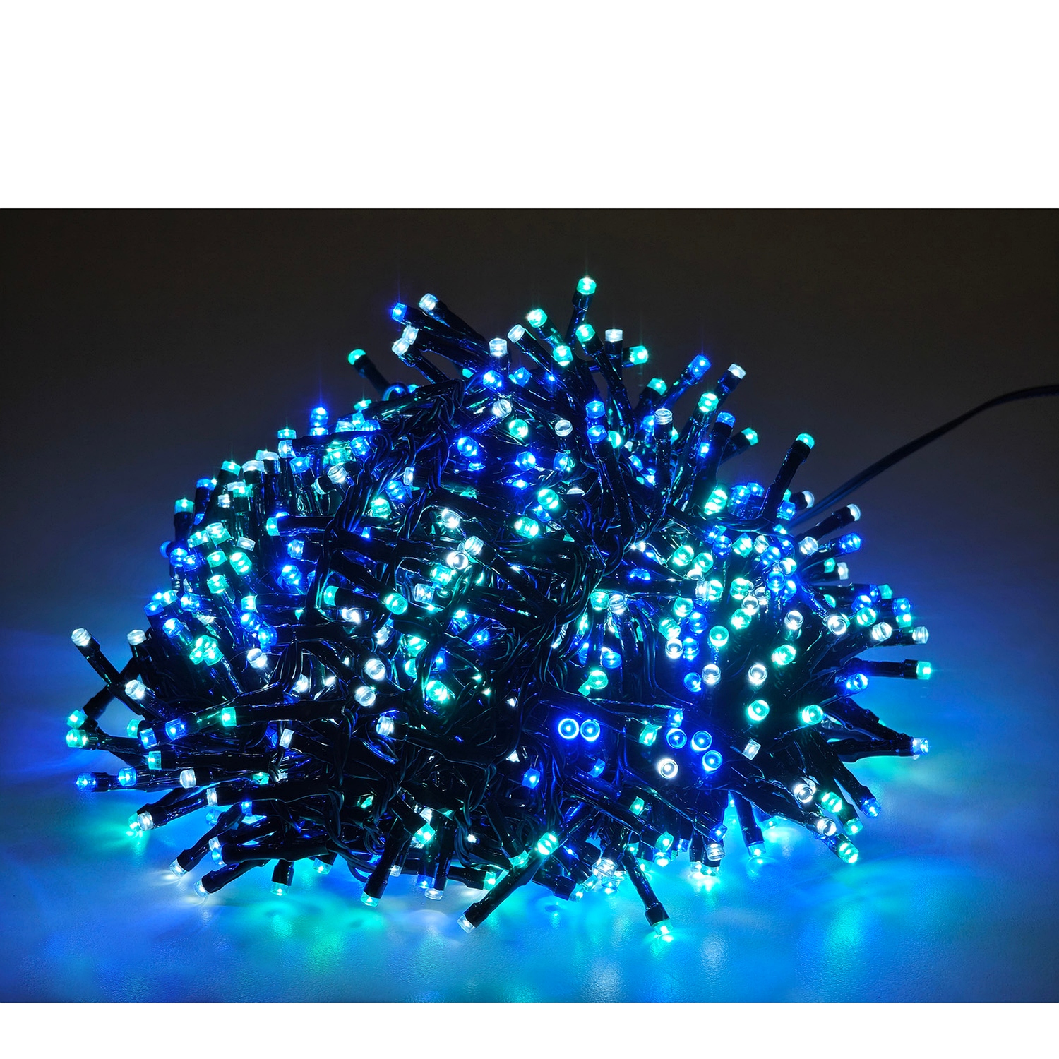 1000 LED εσωτερικού και εξωτερικού χώρου με 8 προγράμματα και μετασχηματιστή πολύχρωμο φως πράσινο καλώδιο μη επεκτεινόμενο IP44 31V 20+2m.