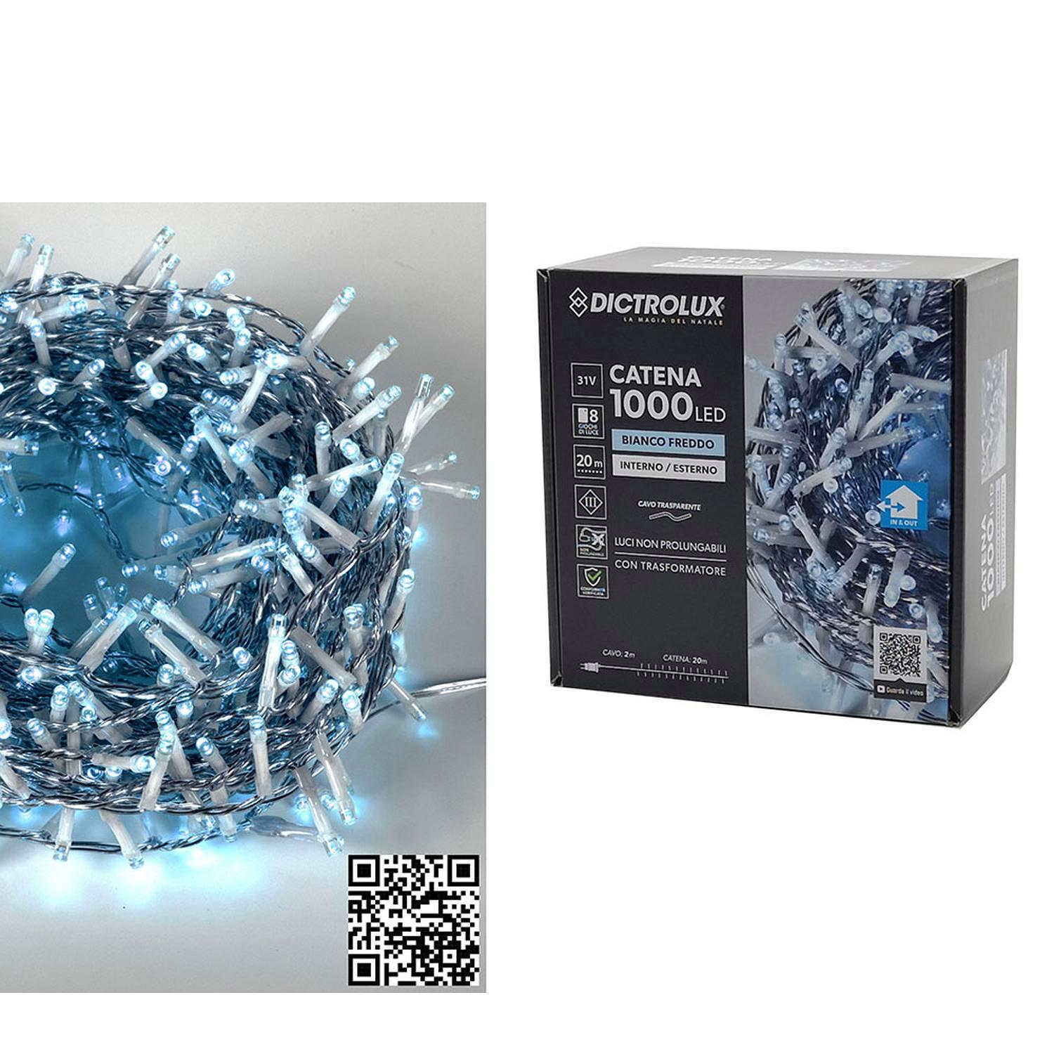 1000 LED εσωτ. & εξωτ. χώρου με 8 προγράμματα ψυχρό λευκό φως διάφανο καλώδιο μη επεκτεινόμενο 31v 22m.