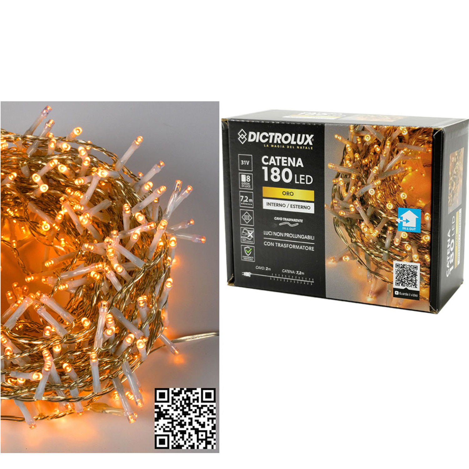 Δημιουργήστε μια λαμπερή και εορταστική ατμόσφαιρα στον εξωτερικό σας χώρο με αυτά τα λαμπάκια. Με 180 LED σε χρυσό χρώμα διαθέτουν διαφανές καλώδιο και πρόγραμμα φωτισμού με 8 παιχνίδια. Ιδανικά για να διακοσμήσετε τον κήπο, το μπαλκόνι ή οποιοδήποτε εξωτερικό σημείο του σπιτιού σας που χρειάζεται μια γιορτινή πινελιά.