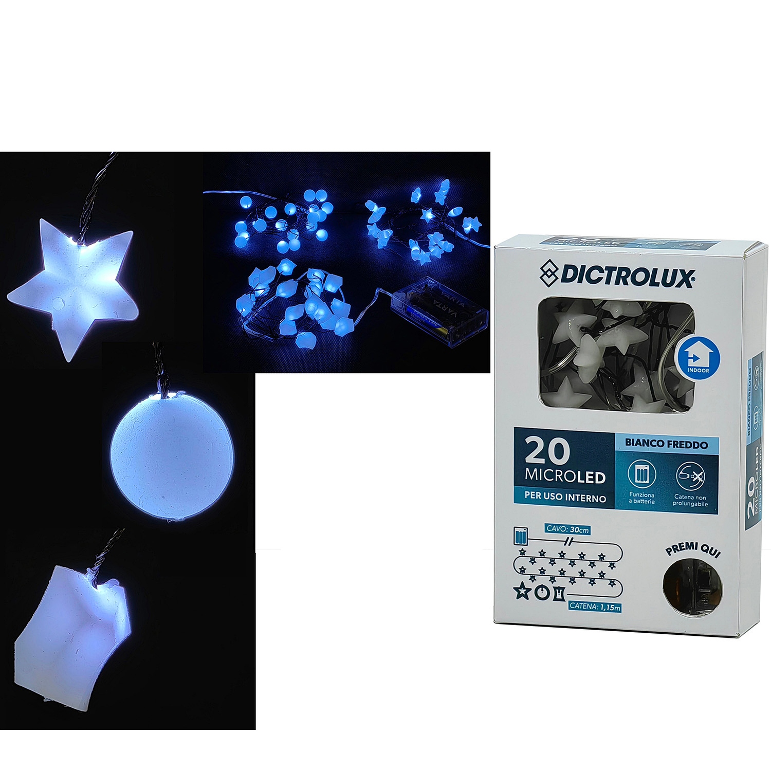 20 LED εσωτερικού χώρου ψυχρό λευκό φως διάφανο καλώδιο μη επεκτεινόμενο μπαταρίας 1.45m.