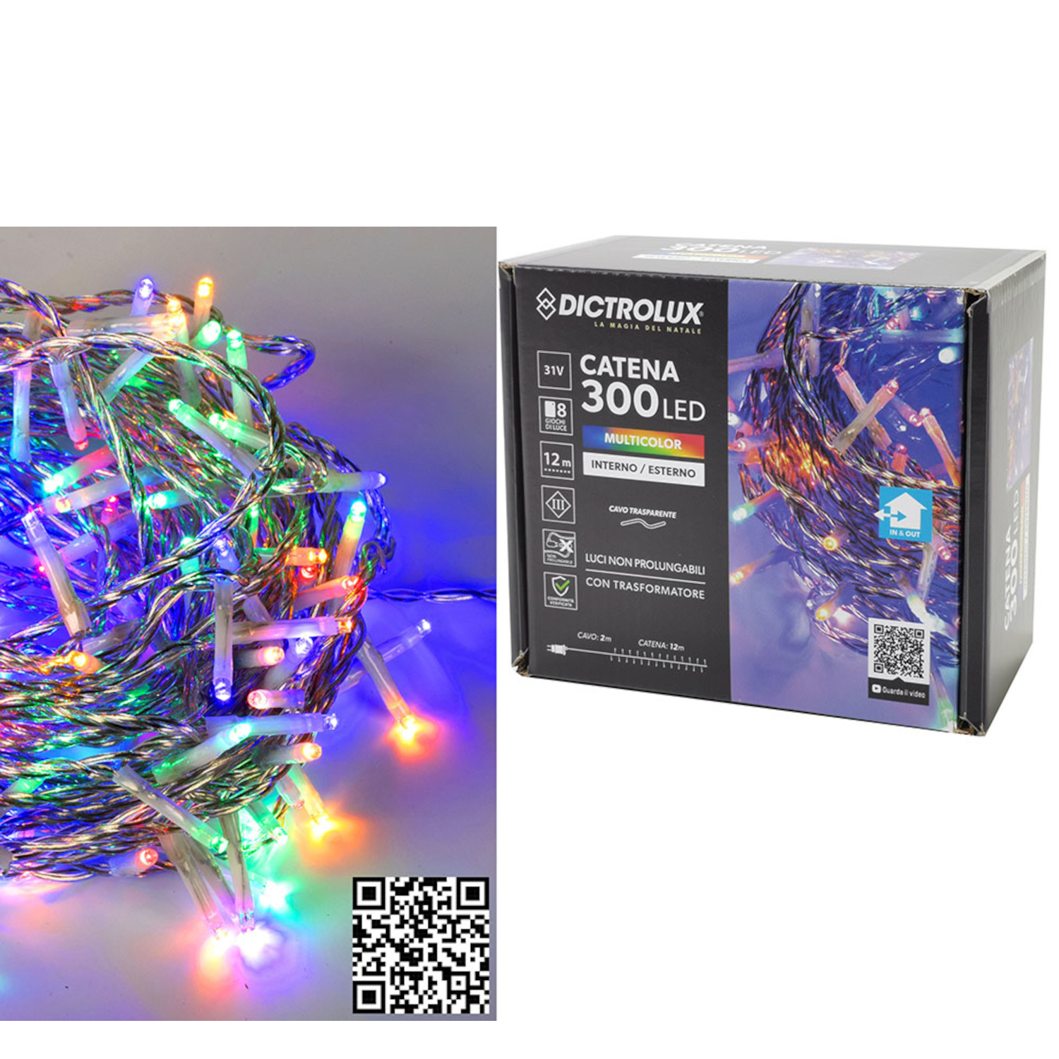 Χριστουγεννιάτικα Λαμπάκια 300 LED Πολύχρωμο Για Εξωτερικό Χώρο Με Διαφανές Καλώδιο Και Πρόγραμμα