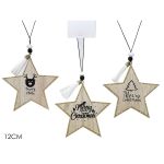 Στολίδι κρεμαστό αστέρι με χρυσό glitter φυσικό ξύλο 12cm σε 3 σχέδια.
