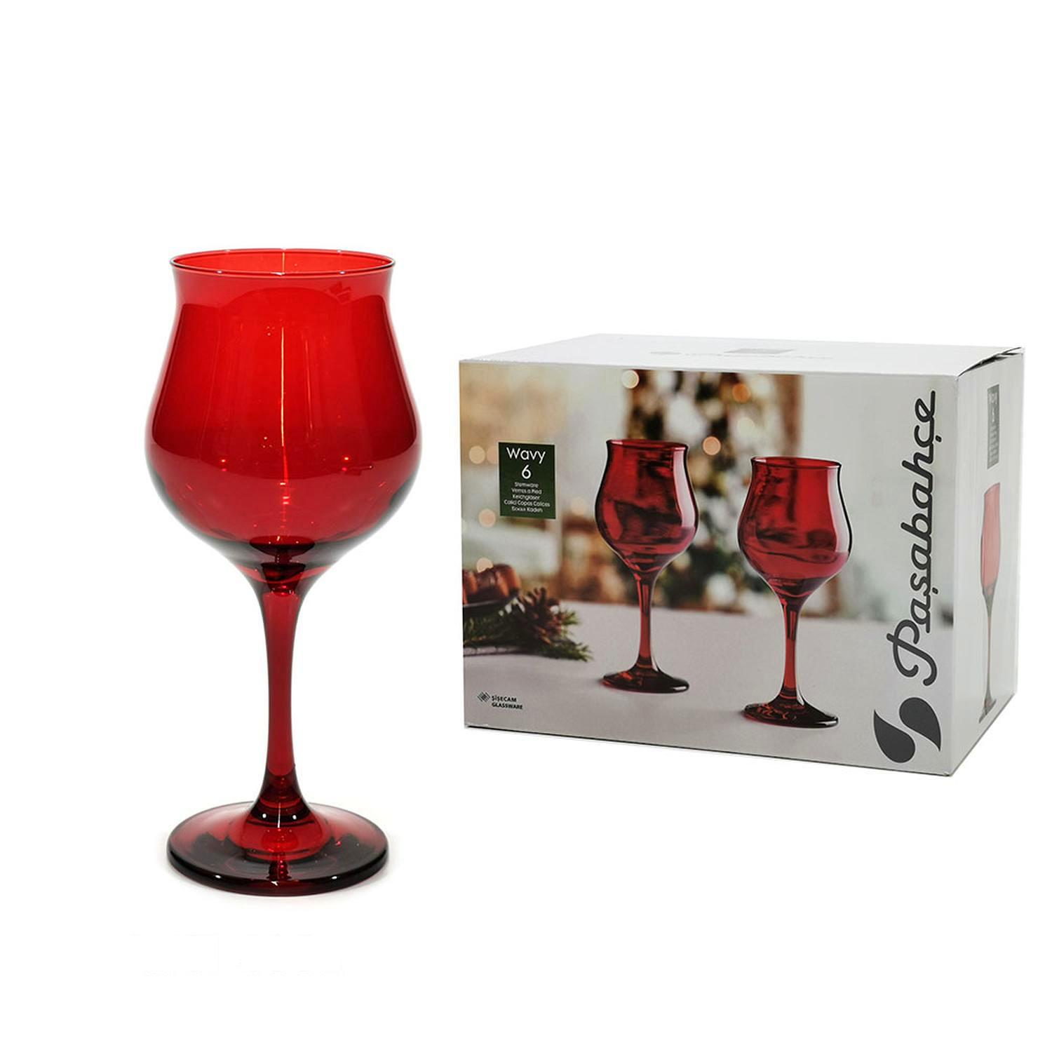Ποτήρι κρασιού 30cl κολωνάτο κόκκινο γυαλί σετ 6τμχ.