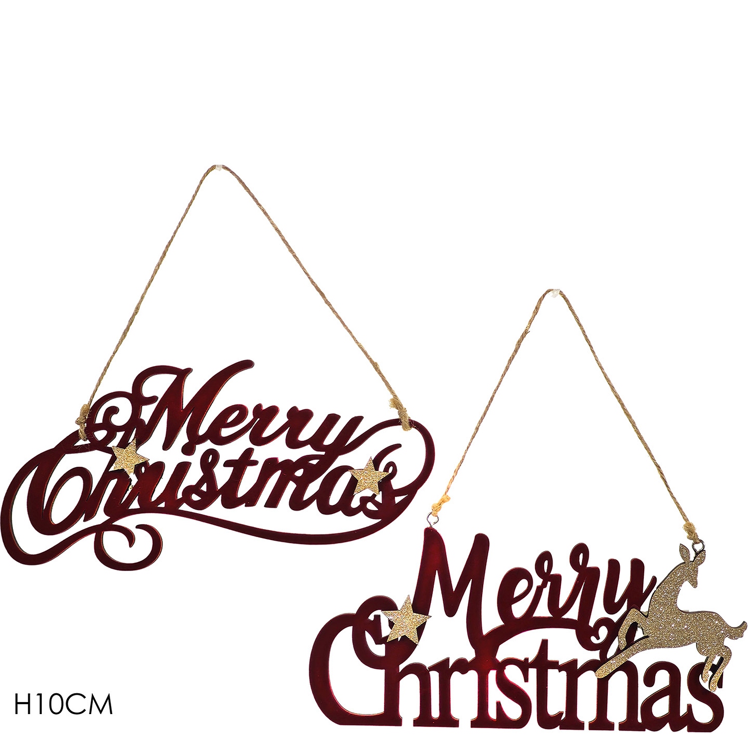 Προσθέστε μια γιορτινή νότα στο σπίτι σας με αυτά τα ξύλινα κρεμαστά διακοσμητικά σε κόκκινο χρώμα. είναι διαθέσιμο σε δύο διαφορετικά σχέδια με το μήνυμα 'Merry Christmas', ιδανικά για να δημιουργήσετε μια χαρούμενη και εορταστική ατμόσφαιρα στο σπίτι σας.
