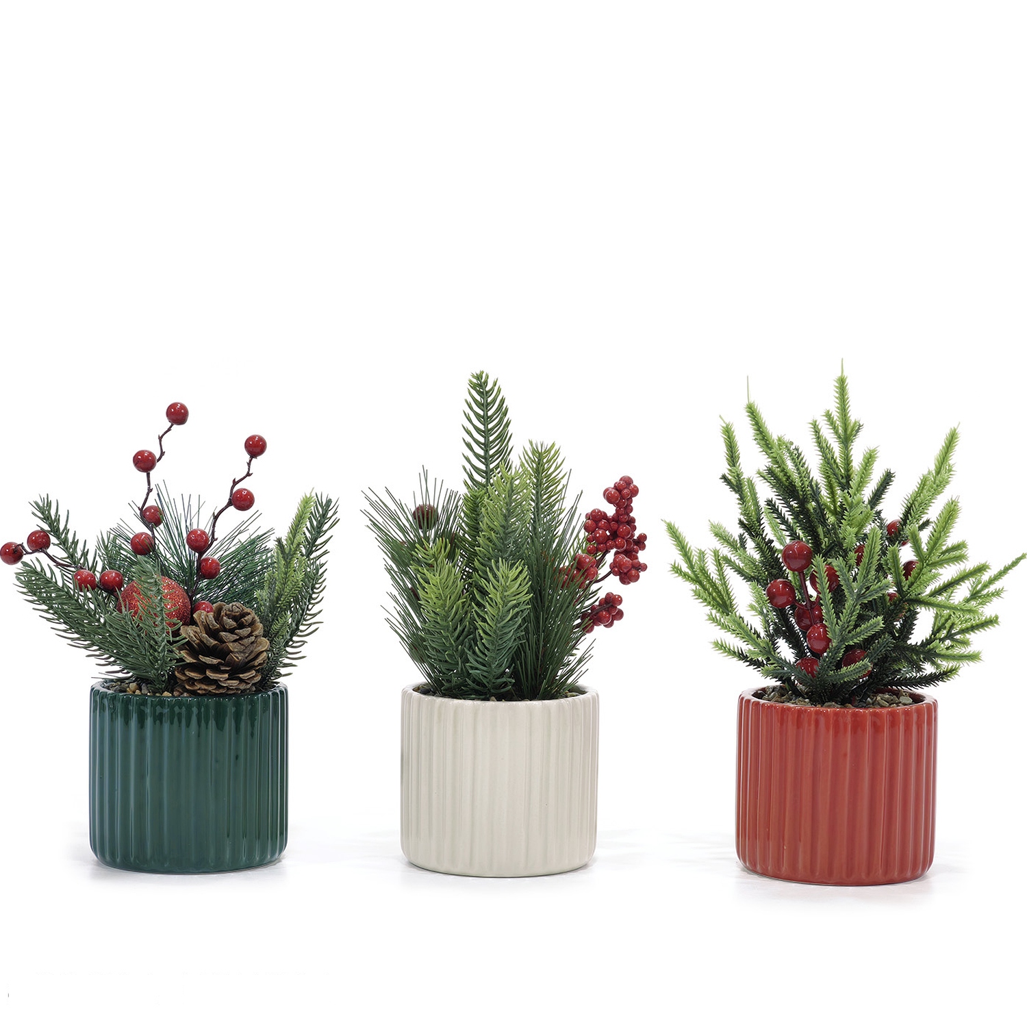 Χριστουγεννιάτικη Γλάστρα Με Φυτό Και Κόκκινα Berries Φ10x25cm Σε 3 Σχέδια