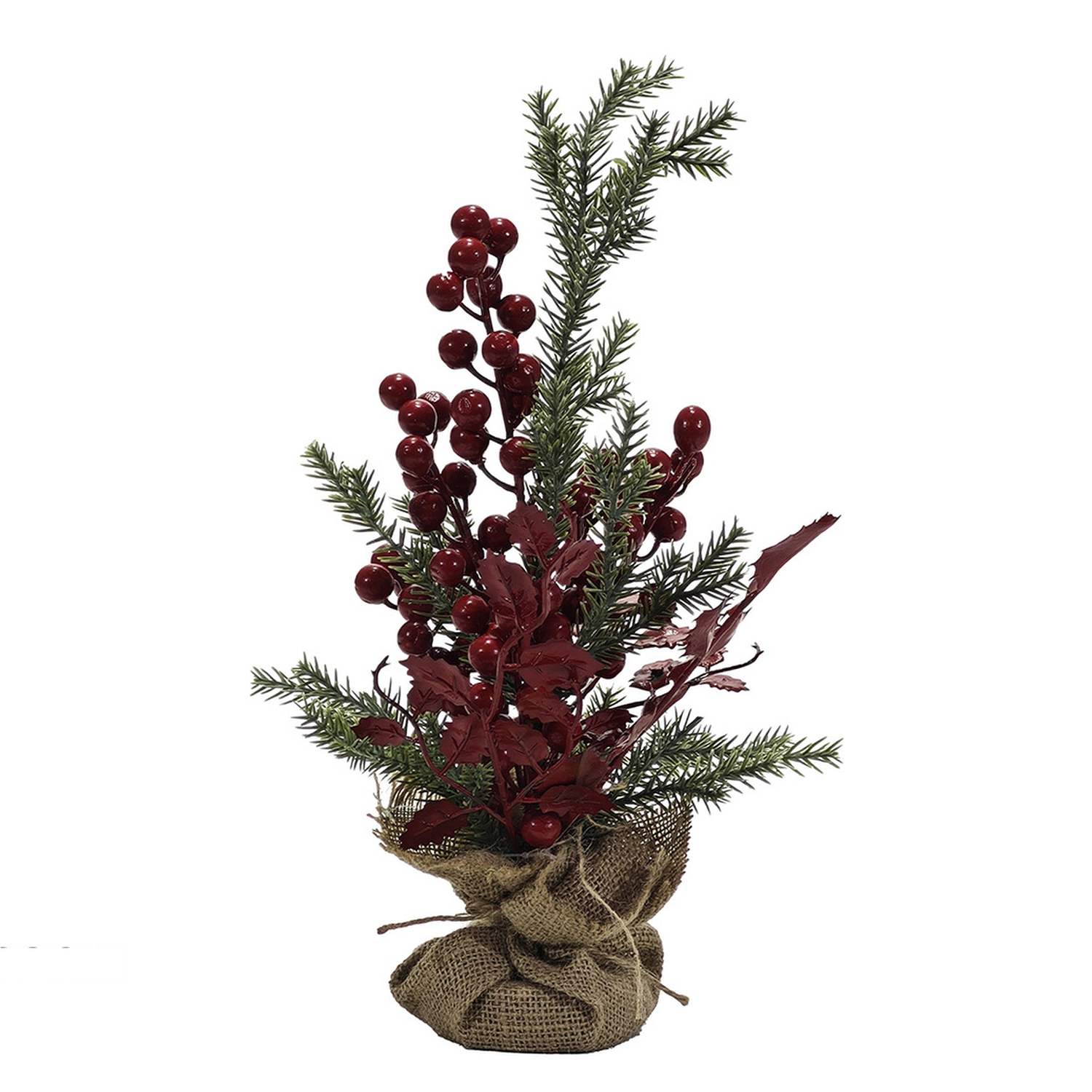 Χριστουγεννιάτικη Γλάστρα Με Σάκο Και Δεντράκι Και Κόκκινα Berries 32cm