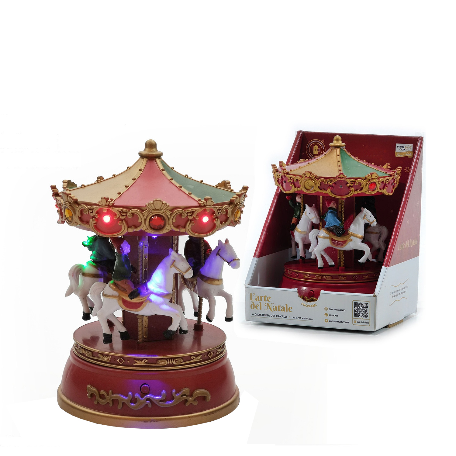 Προσθέστε μια μαγευτική και εορταστική αίσθηση στο σπίτι σας με αυτό το χριστουγεννιάτικο καρουζέλ. Με ύψος 14cm και διάμετρο 13.5cm, το καρουζέλ διαθέτει φωτισμό, κίνηση και μουσική που προσθέτουν λάμψη και ζωντάνια στη διακόσμησή σας. Ιδανικό για να τοποθετηθεί σε κεντρικό σημείο του σπιτιού σας, προσφέροντας μια γιορτινή ατμόσφαιρα που θα ενθουσιάσει την οικογένεια και τους φίλους σας.