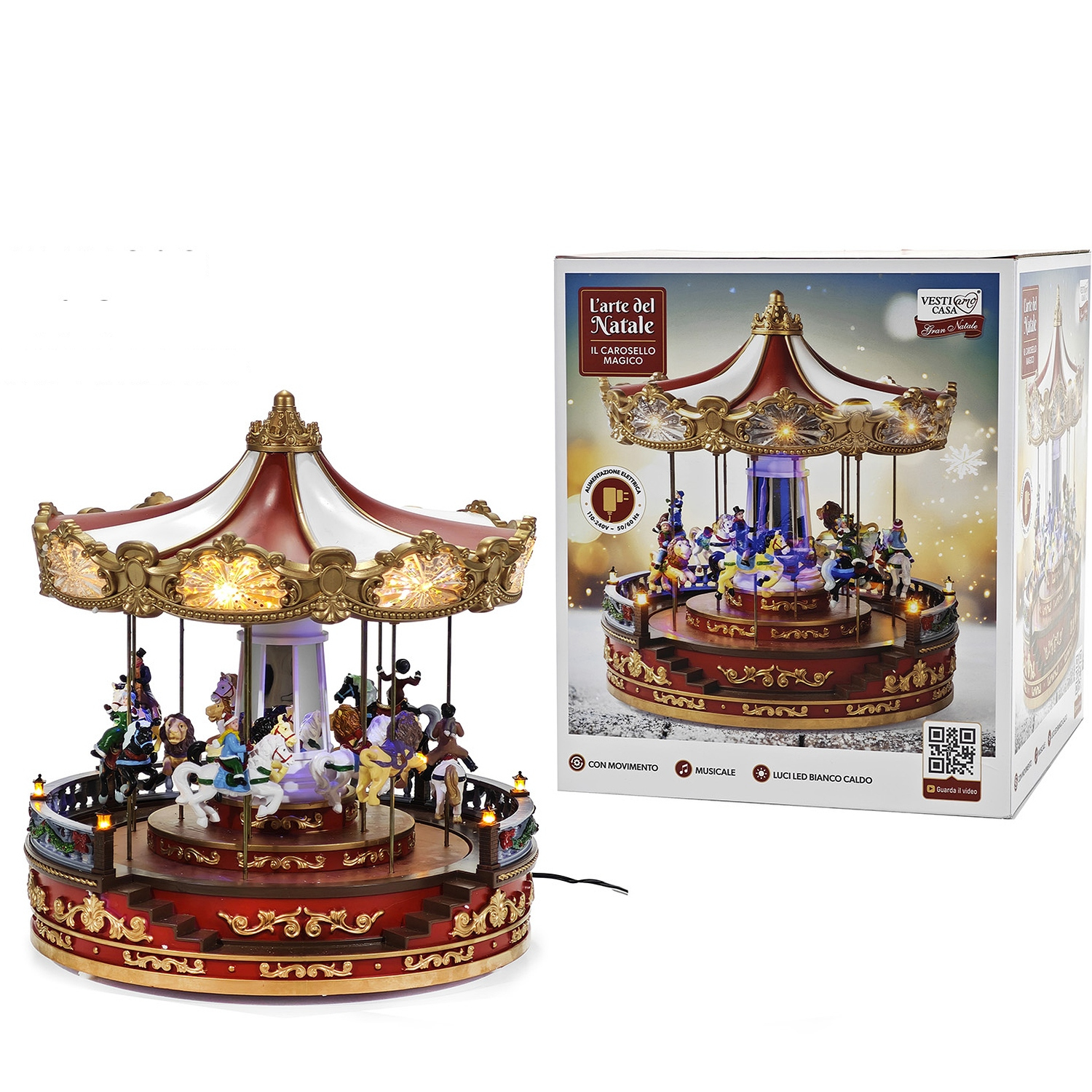 Δημιουργήστε μια μαγευτική και εορταστική ατμόσφαιρα στο σπίτι σας με αυτή τη χριστουγεννιάτικη καρουζέλ. Με διάμετρο 30cm και ύψος 34cm, η καρουζέλ προσφέρει φως, μουσική και κίνηση, ενθουσιάζοντας την οικογένεια και τους φίλους σας με τη ζωντανή της εμφάνιση. Ιδανική για να τοποθετηθεί σε οποιοδήποτε σημείο του σπιτιού σας που χρειάζεται μια γιορτινή πινελιά.