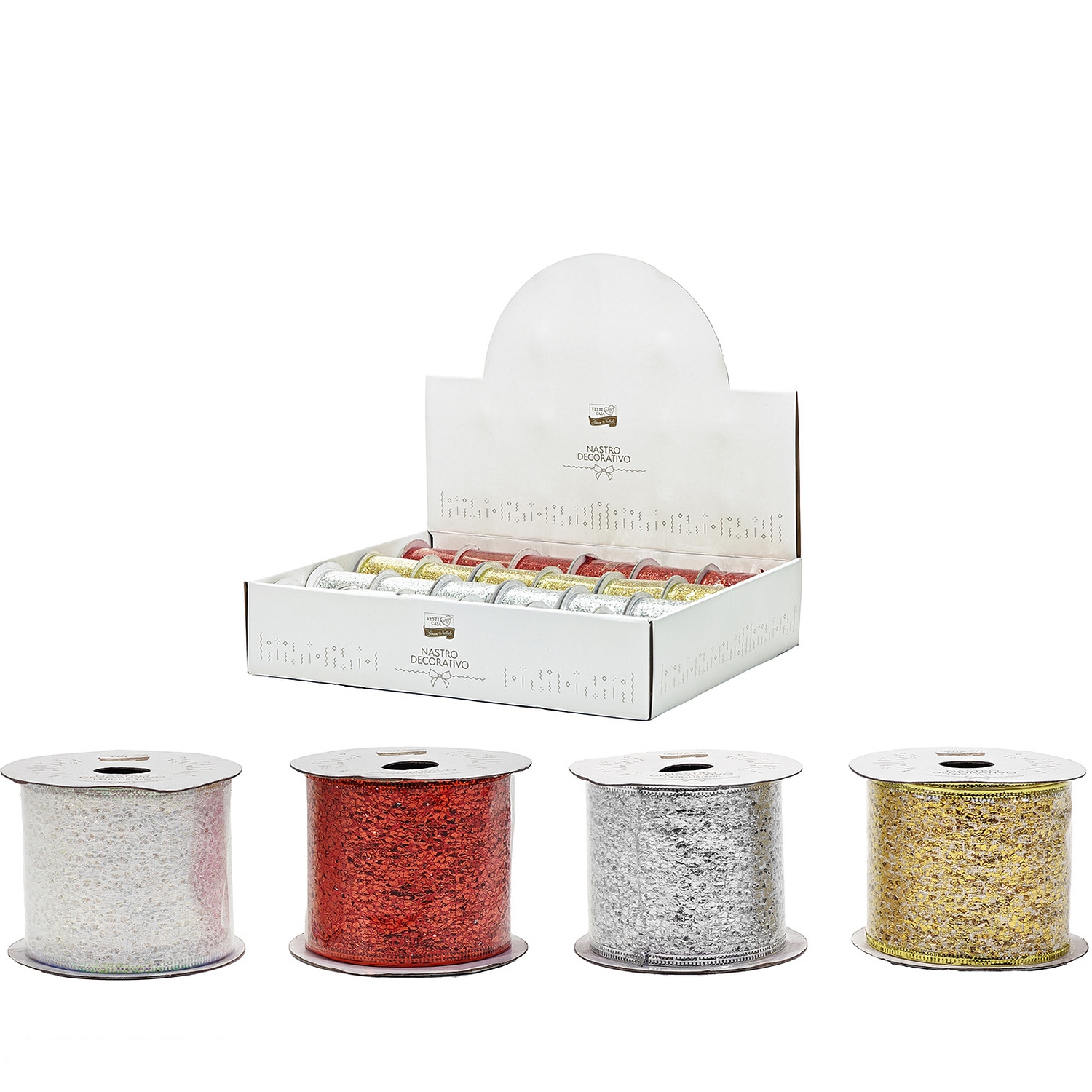 Διακοσμήστε τα χριστουγεννιάτικα δώρα σας ή το σπίτι σας με αυτήν την πολύχρωμη κορδέλα. Με μήκος 270cm και πλάτος 6.3cm, αυτή η κορδέλα είναι διαθέσιμη σε τέσσερα διαφορετικά σχέδια και χρώματα, προσφέροντας μια λαμπερή και εορταστική εμφάνιση. Ιδανική για να προσθέσετε μια χαρούμενη και κομψή πινελιά στις διακοσμήσεις σας.