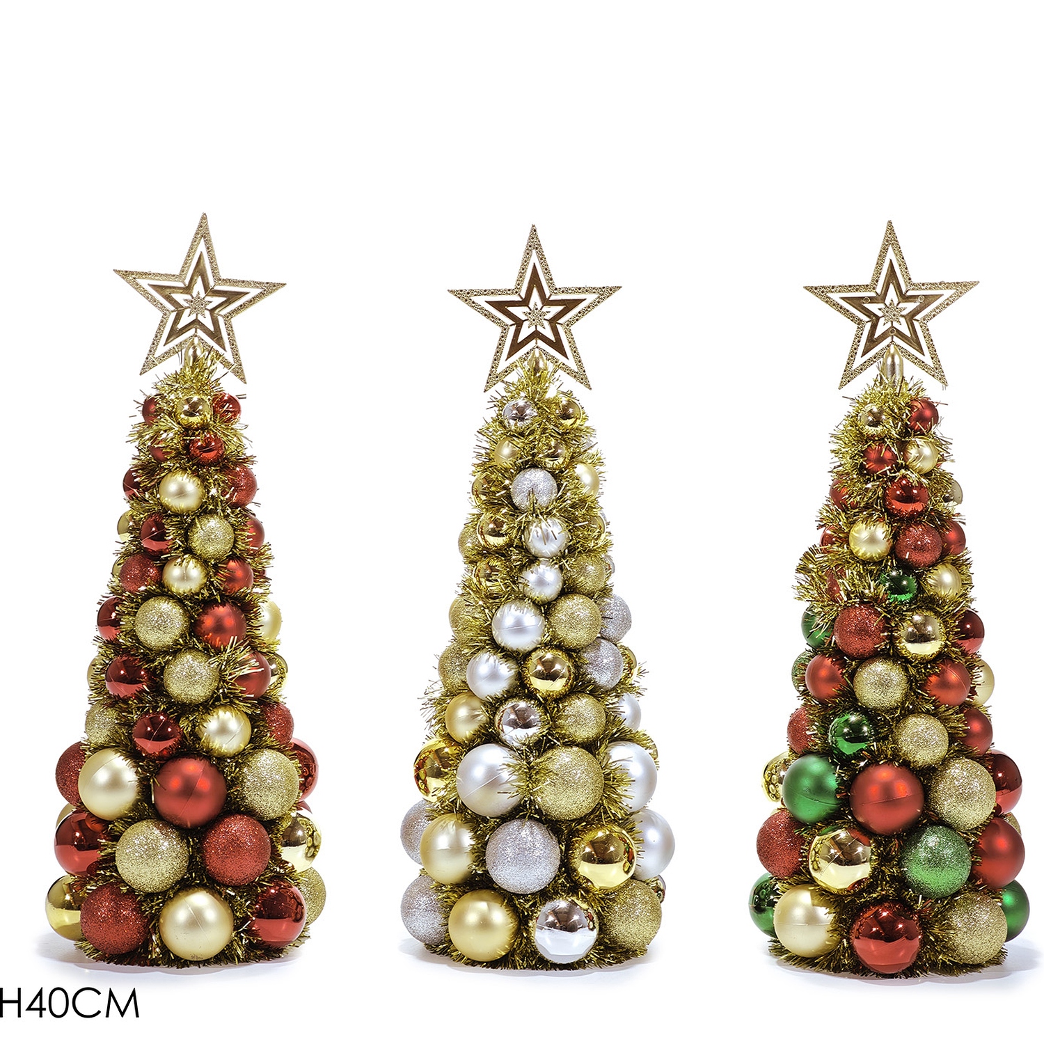 Χριστουγεννιάτικο Δεντράκι Με Μπάλες Και Αστέρι 40cm Σε 3 Σχέδια