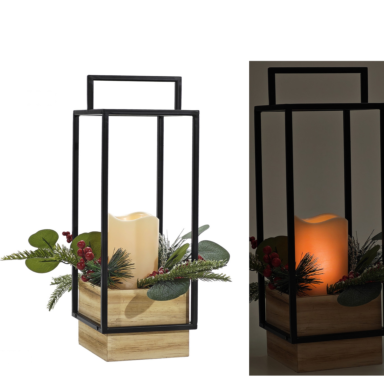 Προσθέστε μια κομψή και γιορτινή αίσθηση στη διακόσμησή σας με αυτό το χριστουγεννιάτικο φανάρι. Με ύψος 40cm, το φανάρι διαθέτει ένα κερί LED που προσφέρει ζεστή λάμψη και δημιουργεί μια μαγευτική ατμόσφαιρα. Ιδανικό για να τοποθετηθεί σε ράφια, τραπέζια ή οποιοδήποτε σημείο του σπιτιού σας που χρειάζεται μια γιορτινή πινελιά.