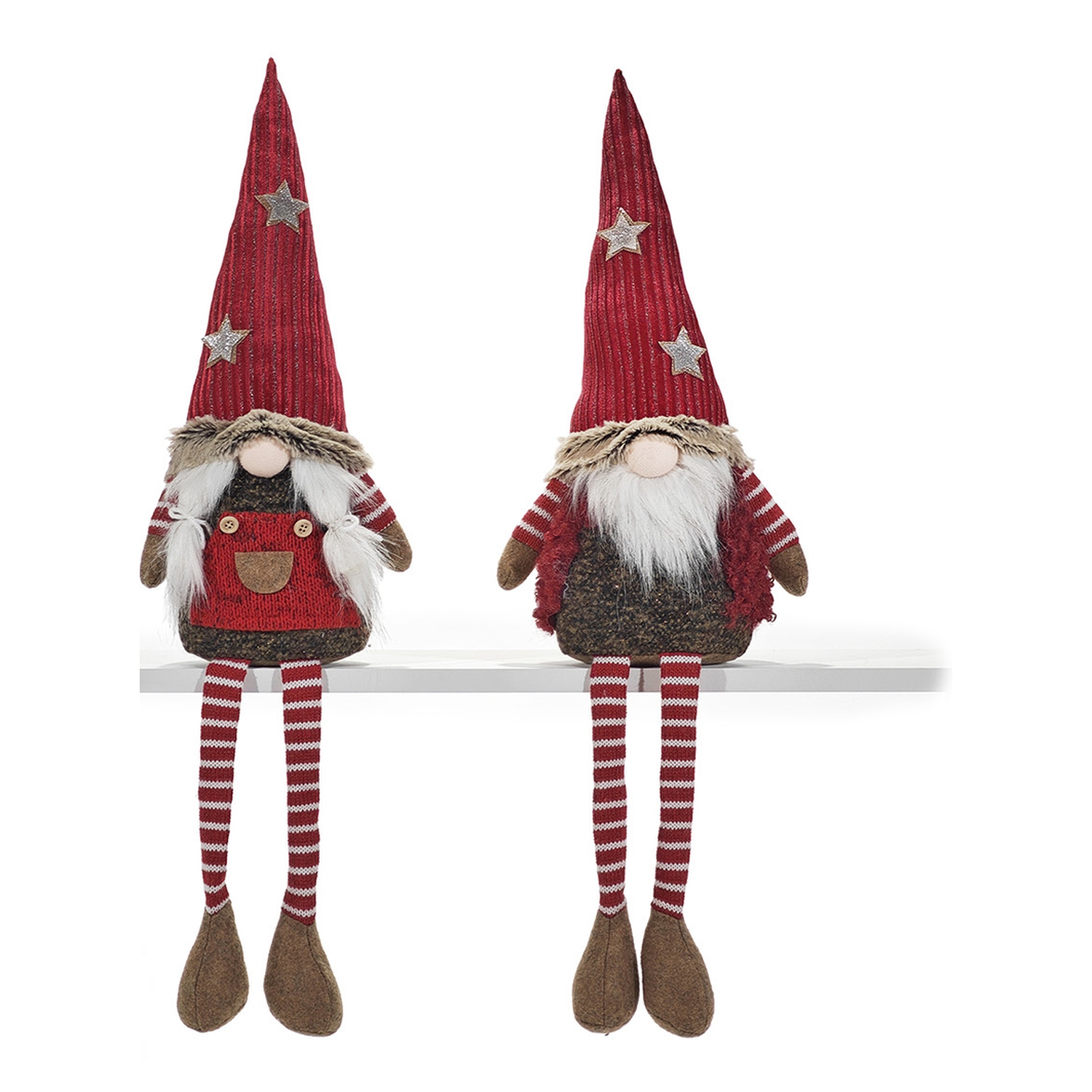 Προσθέστε μια παιχνιδιάρικη και γιορτινή αίσθηση στο σπίτι σας με αυτούς τους βελούδινους γκνόμους με κρεμαστά πόδια. Με ύψος 40cm καθιστοί και 63cm όρθιοι, είναι διαθέσιμο σε δύο διαφορετικά σχέδια με χαριτωμένα χαρακτηριστικά και βελούδινη υφή. Ιδανικοί για να διακοσμήσουν ράφια, τραπέζια ή οποιοδήποτε σημείο του σπιτιού σας που χρειάζεται μια γιορτινή πινελιά.