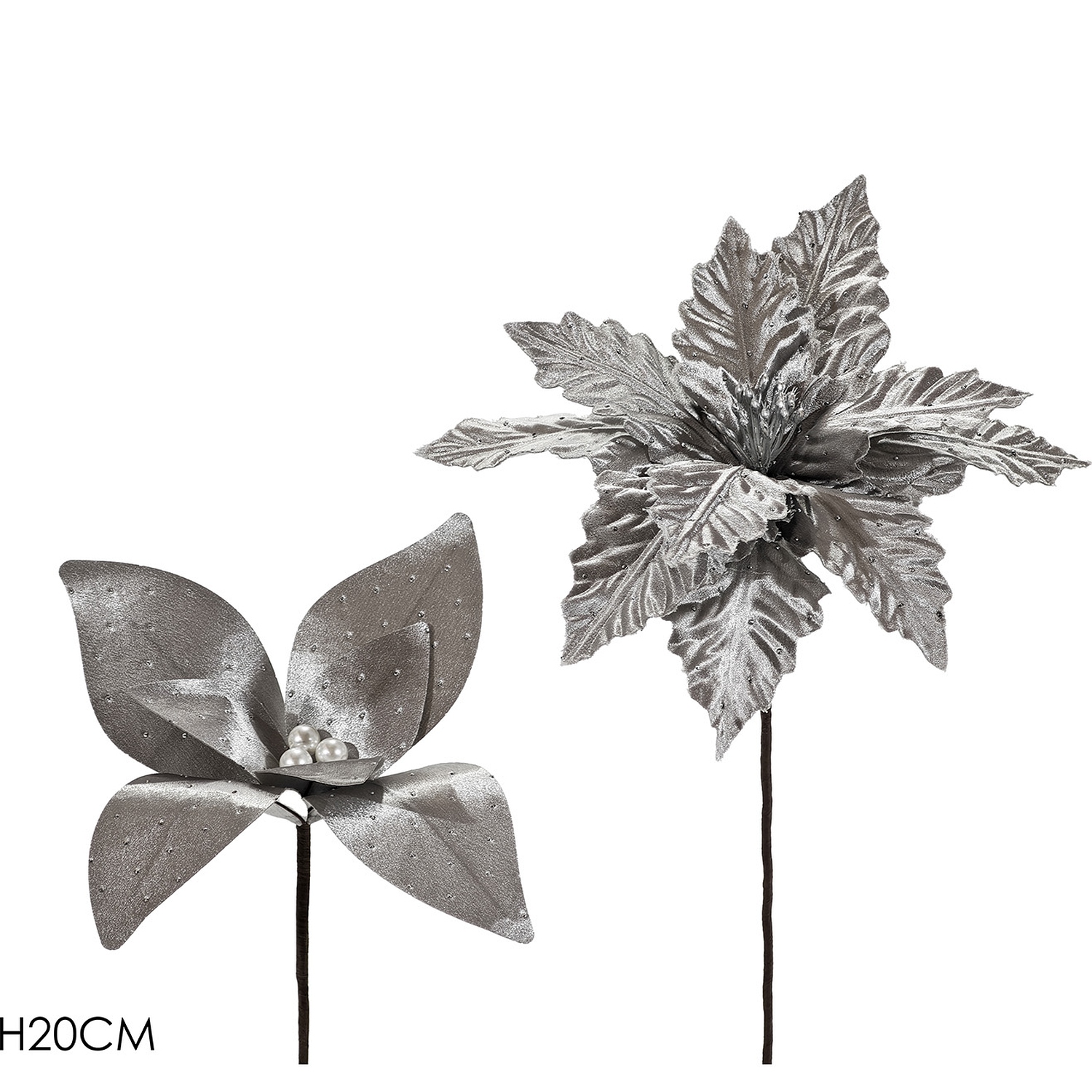 Χριστουγεννιάτικο Κλαδί Με Λουλούδι Ασημί 20cm Σε 2 Σχέδια