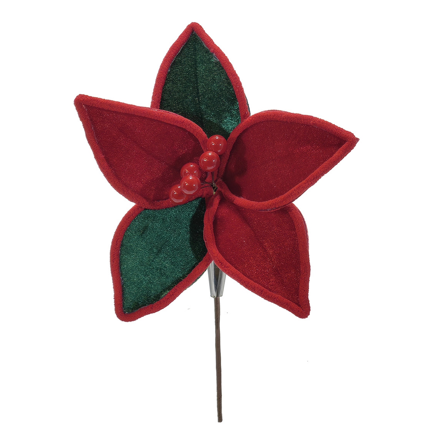 Χριστουγεννιάτικο Κλαδί Με Λουλούδι Κόκκινο/Πράσινο 18cm