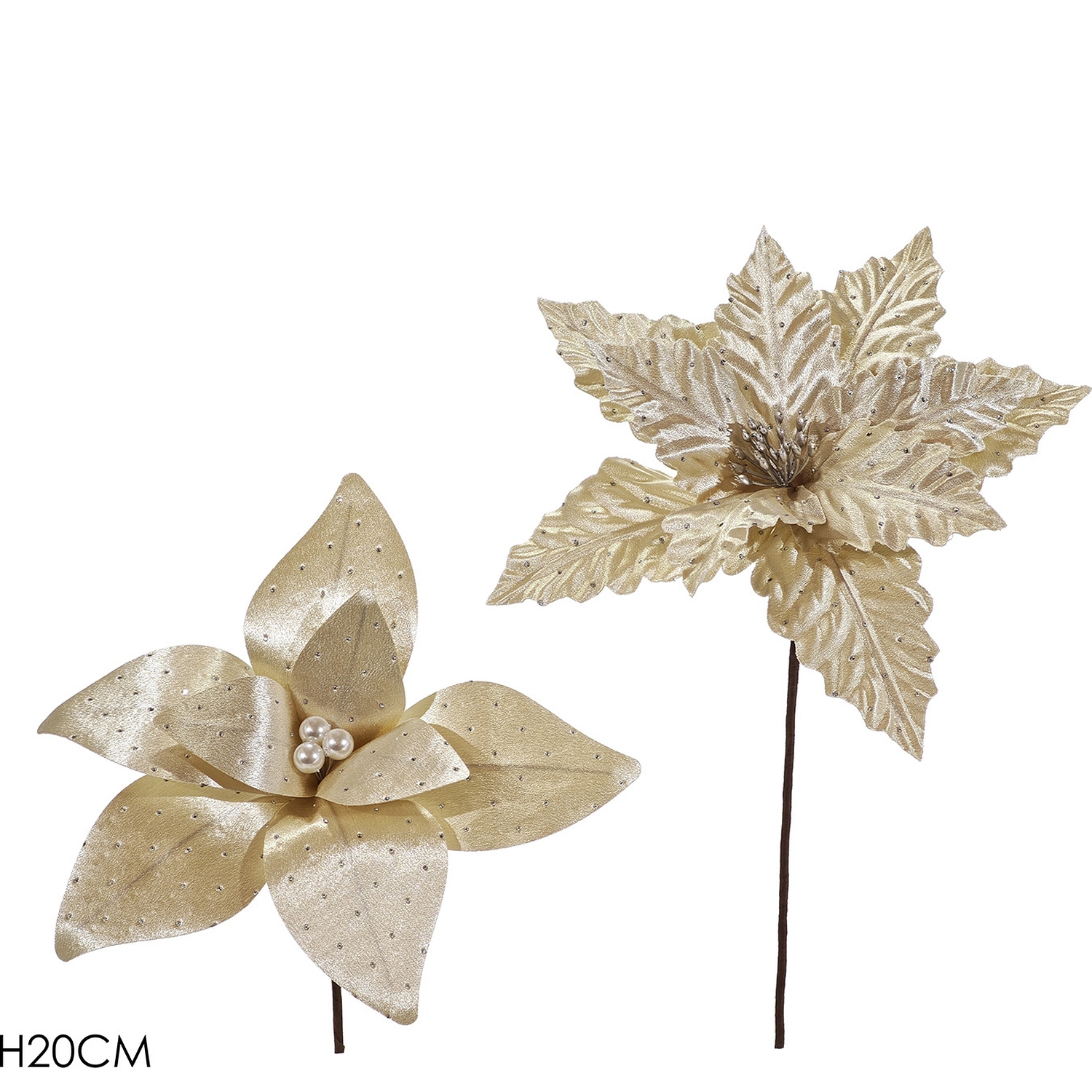 Χριστουγεννιάτικο Κλαδί Με Λουλούδι Σαμπανιζέ 20cm Σε 2 Σχέδια