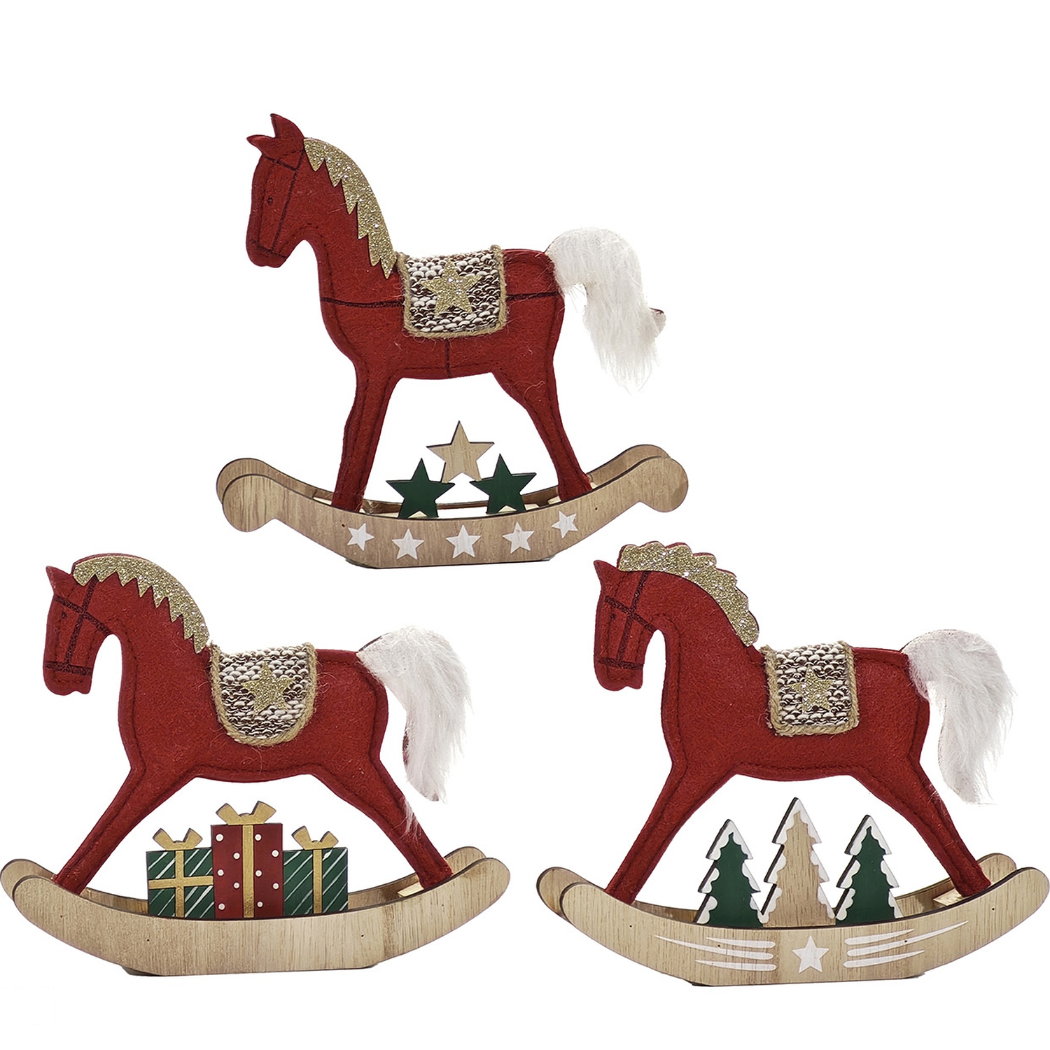 Προσθέστε μια κλασική και γιορτινή πινελιά στη διακόσμησή σας με αυτό το κουνιστό άλογο. Με ύψος 17cm και διαθέσιμο σε 3 διαφορετικά σχέδια, αυτό το άλογο είναι ιδανικό για να τοποθετήσετε σε τραπέζια, ράφια ή κονσόλες. Προσφέρει μια ζεστή και νοσταλγική αίσθηση στον χώρο σας.