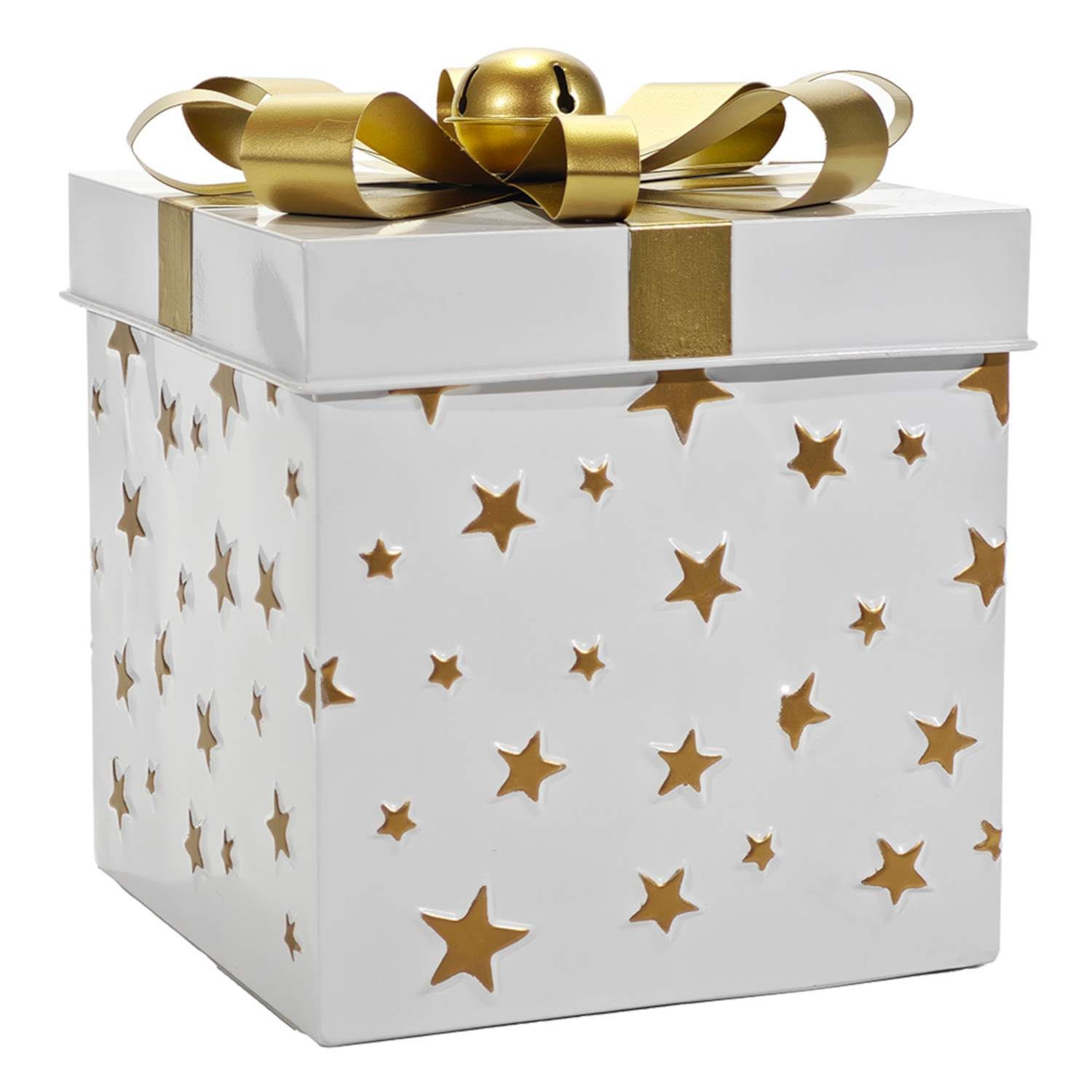 Προσθέστε μια κομψή και γιορτινή πινελιά στη διακόσμησή σας με αυτό το χριστουγεννιάτικο κουτί δώρου. Με ύψος 26cm και λευκό χρώμα, διακοσμημένο με χρυσά αστέρια, αυτό το κουτί είναι ιδανικό για να τοποθετήσετε μικρά δώρα ή γλυκίσματα. Προσφέρει μια χαρούμενη και εορταστική αίσθηση στον χώρο σας.