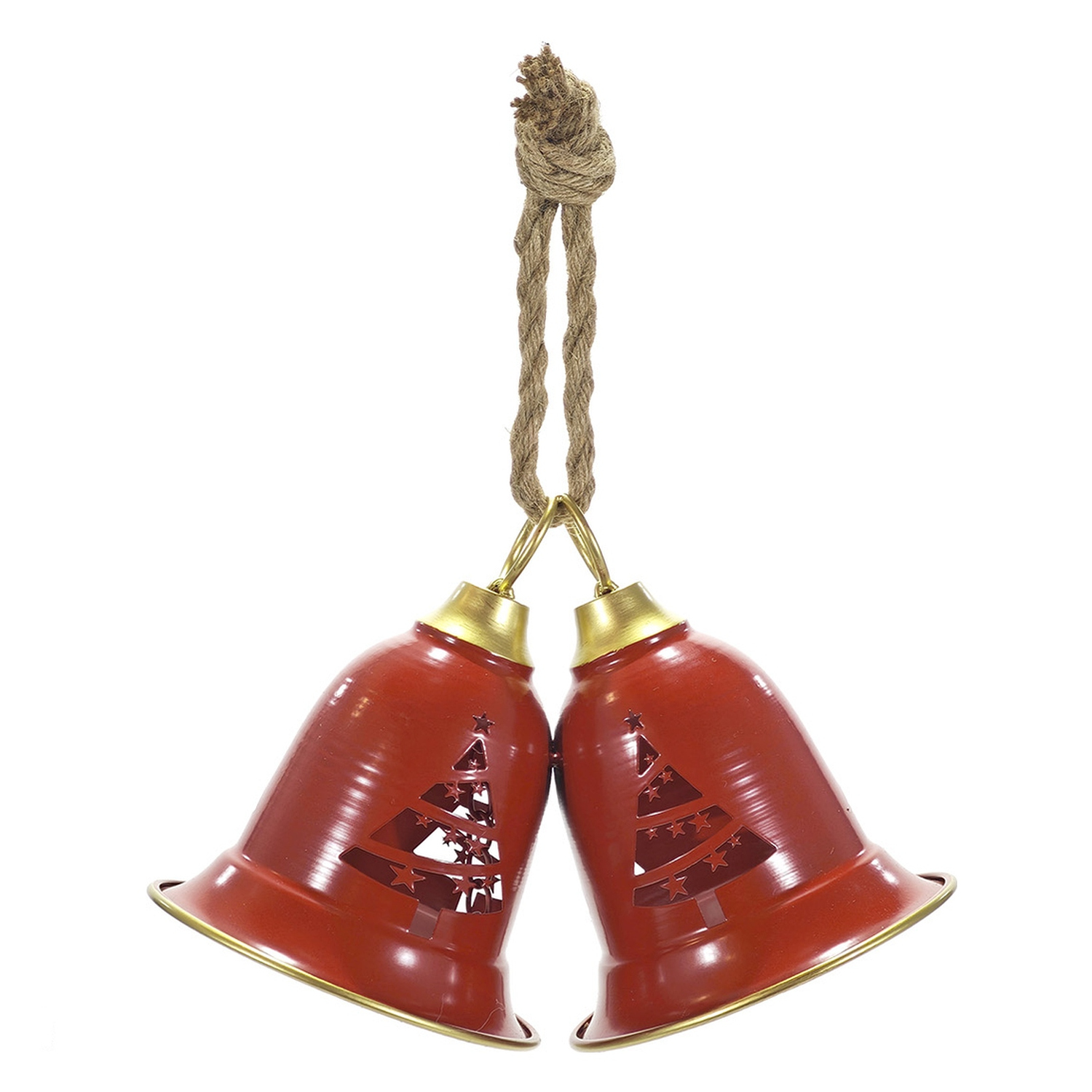 Προσθέστε μια γιορτινή και χαρούμενη αίσθηση στο σπίτι σας με αυτό το χριστουγεννιάτικο κρεμαστό διακοσμητικό με δύο καμπάνες σε κόκκινο χρώμα. Με ύψος 19cm, αυτό το διακοσμητικό προσφέρει λάμψη και ζωντάνια στη διακόσμηση σας. Ιδανικό για να κρεμαστεί σε πόρτες, παράθυρα ή οποιοδήποτε σημείο του σπιτιού σας που χρειάζεται μια γιορτινή πινελιά.