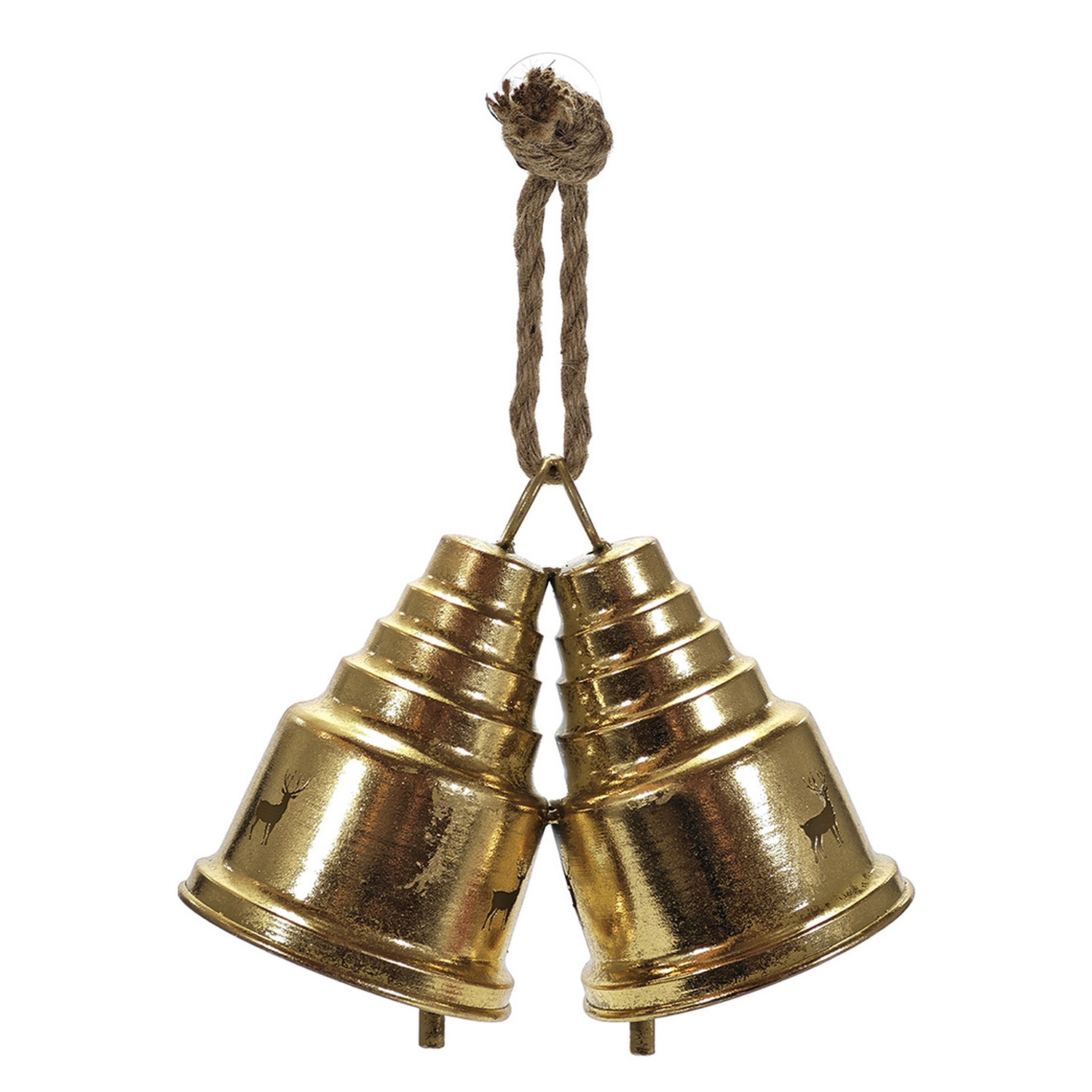 Προσθέστε μια λαμπερή και εορταστική αίσθηση στο σπίτι σας με αυτό το χριστουγεννιάτικο κρεμαστό διακοσμητικό με δύο καμπάνες σε χρυσό χρώμα. Με ύψος 22cm, αυτό το διακοσμητικό προσφέρει λάμψη και ζωντάνια στη διακόσμησή σας. Ιδανικό για να κρεμαστεί σε πόρτες, παράθυρα ή οποιοδήποτε σημείο του σπιτιού σας που χρειάζεται μια γιορτινή πινελιά.