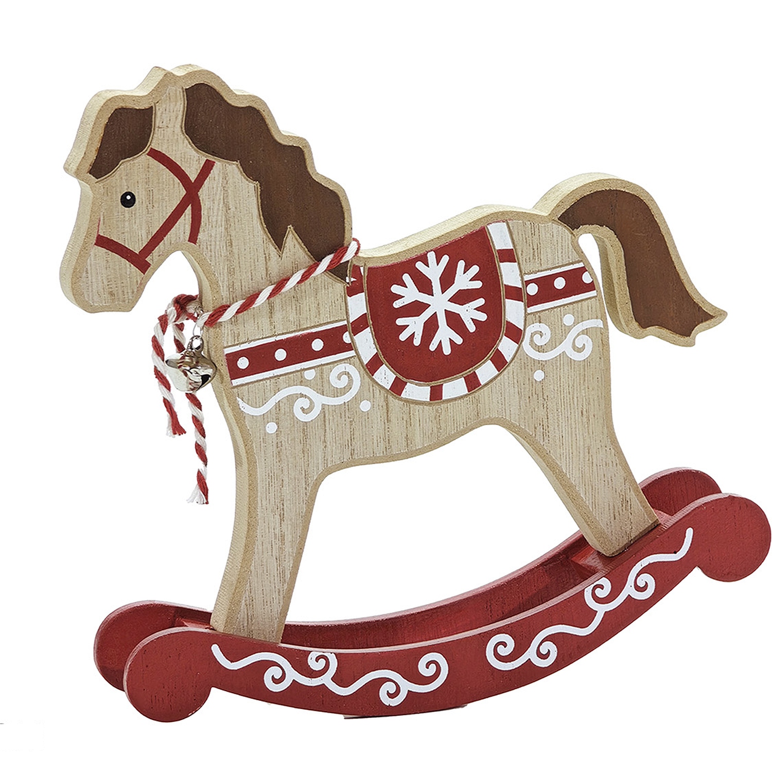 Προσθέστε μια νοσταλγική και παραδοσιακή πινελιά στη χριστουγεννιάτικη διακόσμησή σας με αυτό το ξύλινο αλογάκι κούνια. Με ύψος 17cm, αυτό το διακοσμητικό είναι ιδανικό για να τοποθετηθεί σε ράφια, τραπέζια ή κάτω από το χριστουγεννιάτικο δέντρο, προσφέροντας μια ζεστή και χαρούμενη αίσθηση. Το κλασικό του σχέδιο και οι λεπτομέρειες το καθιστούν ένα αγαπημένο αντικείμενο για μικρούς και μεγάλους.