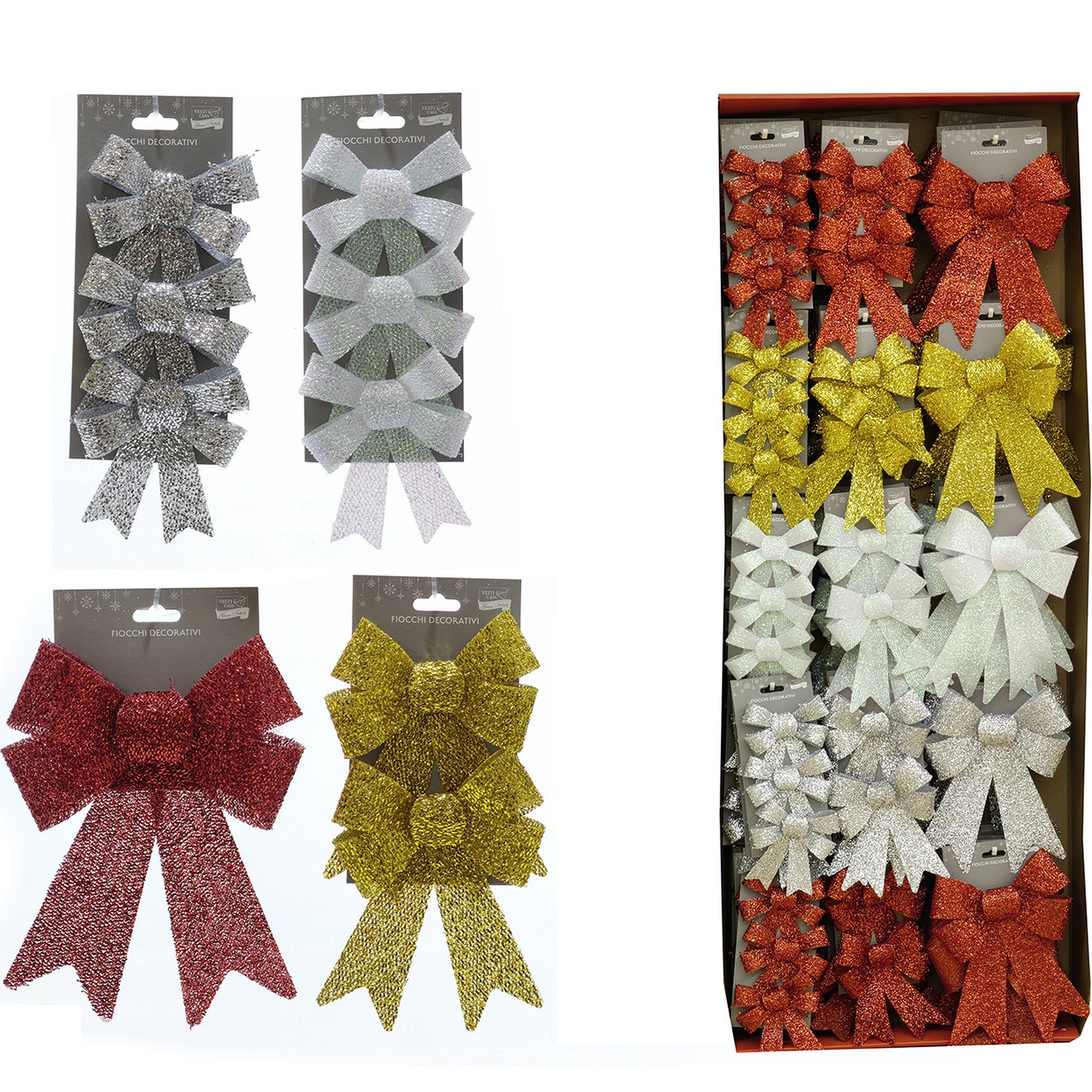 Διακοσμήστε το χριστουγεννιάτικο δέντρο σας ή οποιαδήποτε άλλη γιορτινή διακόσμηση με αυτό το σετ φιόγκων. Με διαστάσεις 15x25cm, οι φιόγκοι είναι διαθέσιμοι σε διάφορα χρώματα και σχέδια, προσφέροντας μια λαμπερή και εορταστική εμφάνιση. Ιδανικοί για να προσθέσετε μια χαρούμενη και κομψή πινελιά στη διακόσμησή σας.
