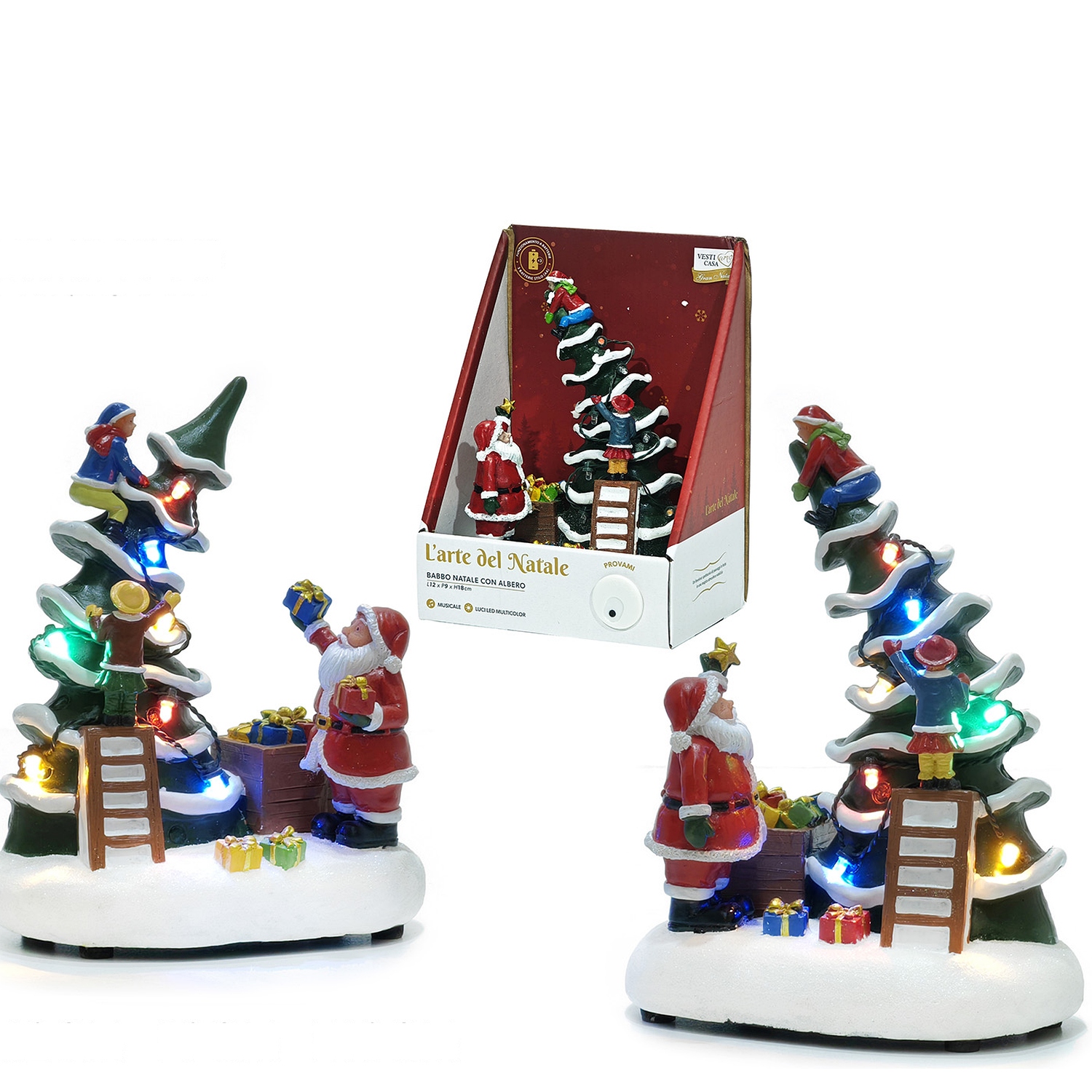 Χριστουγεννιάτικο Σκηνικό Άγιος Βασίλης Με Δέντρο Με Φως Και Μουσική 12x9x18cm